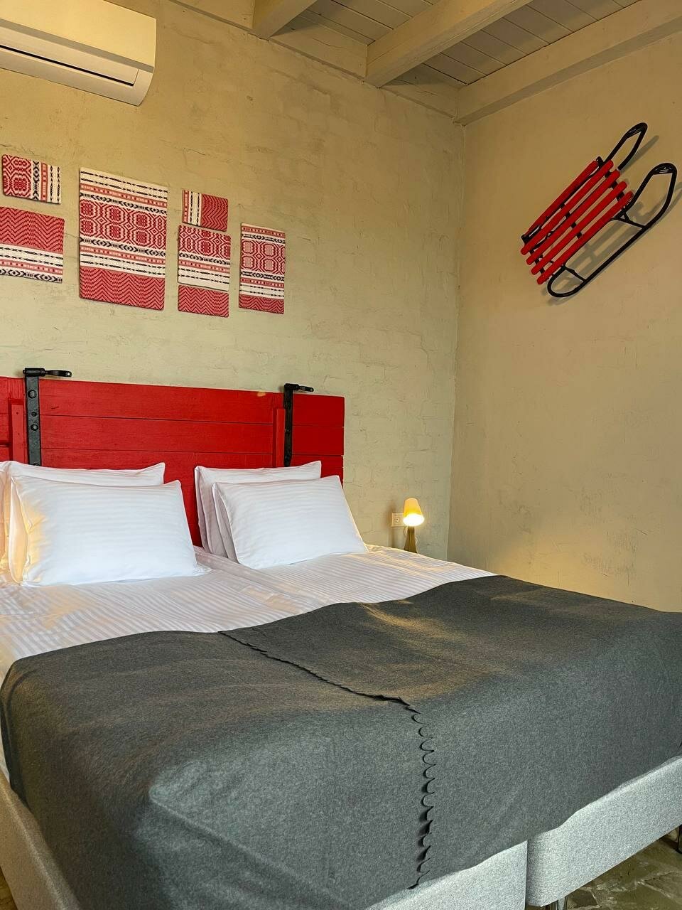 Ездили в отель группой по йоге, так что он весь был для нас. Комнаты классные, все разные, тёплые полы. Особенно симпатичные комнаты наверху, с ковролином, мансардными окнами. Интерьер красиво оформлен, всё новенькое, чистое. Единственный минус — это душевые: дренаж спускает плохо, вода не очень горячая текла. При отеле живут две дружелюбные собачки и кошечка, любят, когда их гладят!