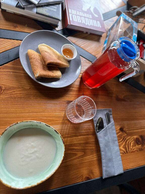 Далеко и непонятно Что то, безусловно понравилось. Здание, атмосфера внутри, антураж и тд. Блюда жирноваты, выбор небольшой,а может мы не все пробовали. Основной недостаток отдалённость. Плохая дорога. Но если путешествовать по деревням, как раз удобное место, чтобы ночевать. Недалеко есть красивый, разрушенный храм, который немного приводят в порядок. Есть интересные деревни и места, тем кто это любит смотреть.