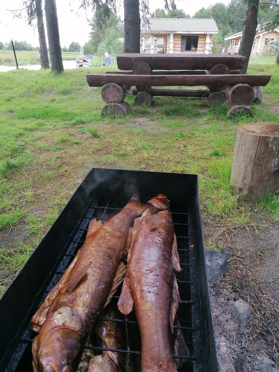 Очень понравилось — адекватная цена, приветливый хозяин, удобные домики с кухней (на кухне есть всё!) есть интернет, ТВ (20кан.). Связь, к сожалению, только мегафон или рации. Есть баня, катер, мангал. У хозяина имеется запас топлива для автомобиля (ближайшая заправка только в Медвежьегорске, это надо учесть)