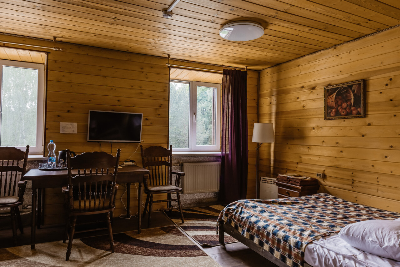 Отдыхали с семьёй в октябре. Очень красиво встретили золотую осень. Снимали номер в лесном трактире. Номер большой, туалет общий на 5 номеров. В номере тепло, даже жарко. Что не понравилось, и за что сняли звезду: 1. Первый раз встречаем в подобного рода отелях платную экскурсию по территории с животными. По логике если ты снимаешь в гостинице номер, то эту услугу можно было бы сделать бесплатной, другое дело когда люди приехали просто на экскурсию. 2. Не вкусная еда в кафе, к сожалению. Брали вареники, такое ощущение что они были заморожены уже год. 3. Достаточно убитый вид территории. Все это конечно сгладилось под общим впечатлением природной красоты. Месту просто необходим хороший маркетинг и немного апгрейд территории. Если нужен хороший маркетолог обращайтесь))