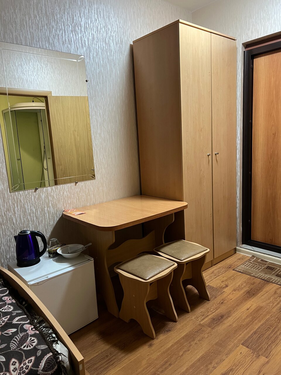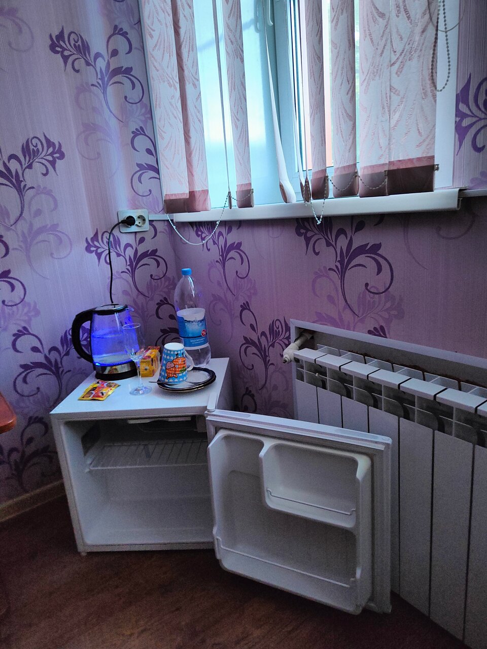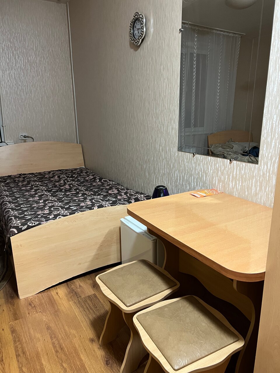Гостиница спряталась среди частного сектора, нашёл со второго раза. Небольшая и очень уютная гостиница, за свои деньги отличный вариант, всё в норме работае, в каждом номере микроволновка, чайник+бутылка воды большая+ чай и кофе 3/1, холодильник, телевизор, кружки, тарелки, приборы,две кровати и это за 2200 , скажу на опыте, за более высокую цену такого набора не будет,есть парковка, в общем приятно удивлён.