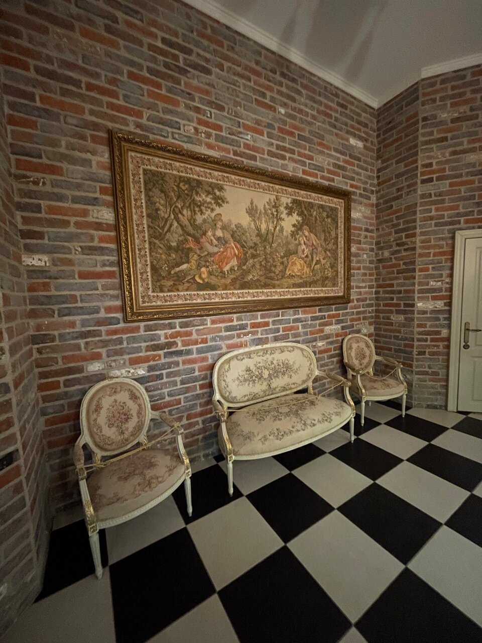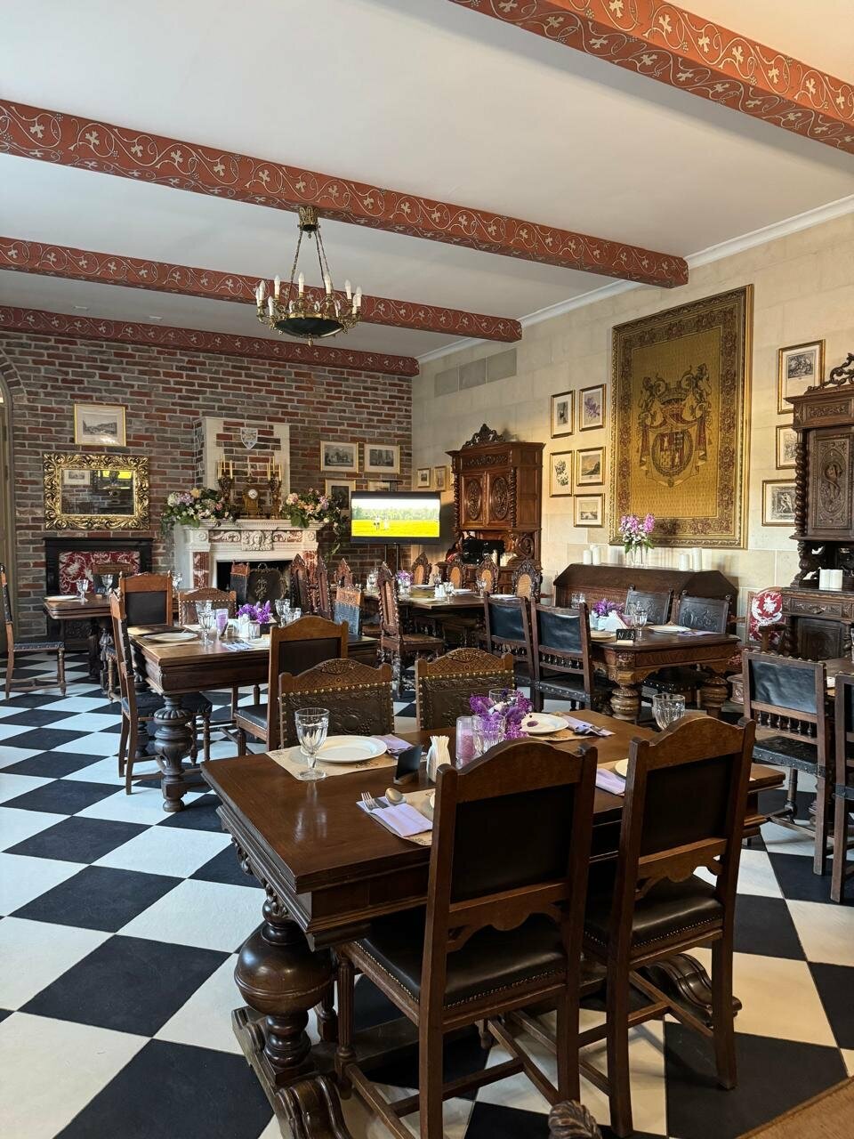 Очень атмосферное место!!! Ещё хочу вернуться!!! Это реально замок со антикварной мебелью местами вежливый и аккуратный персонал, уютно!
