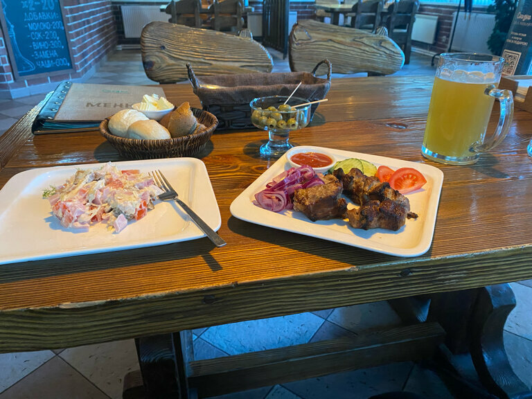 - Вкусная еда, особенно мясо и рёбрышки.