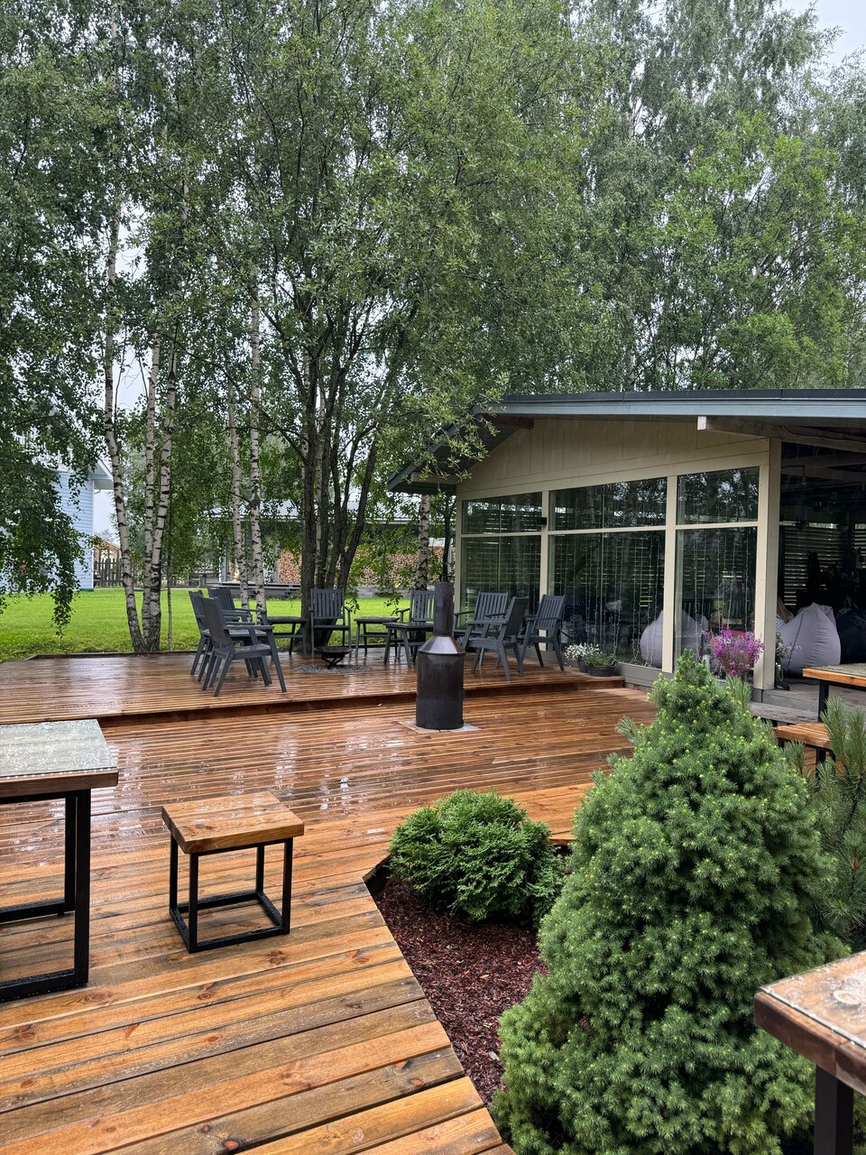 Ну вот не могу поставить 5:( Отношение персонала 5 Номера 5 Баня и купель 5 Кальян 5 Еда 4- , выбор не большой. Ужин 1000 с человека, но он того не стоит. А есть Больше негде, рядом не кафе, ничего И там, конечно, скучно ну прямо совсем нечего делать. До финского залива ехать на машине нужно, в заповедник приехали, который там рекомендуют, не нашли входа. В Копорье нечего смотреть и на реставрацию крепость закрыта. Так круто если ты очень устал от городской суеты и готов просто сидеть на природе и ходить по небольшому участку
