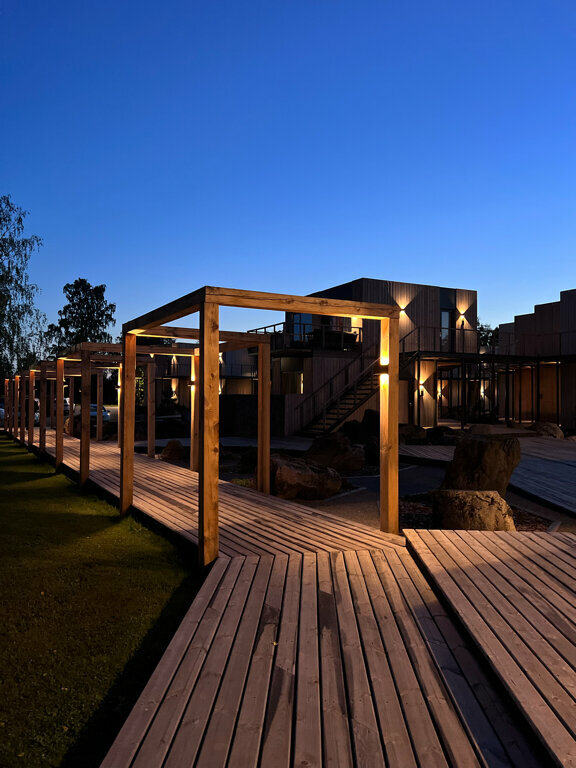 Хороший, атмосферный отель в современном стиле. Красивая территория в эко стиле. Годный завтрак шведский стол, и вкусный ужин. Номера от стандартов с деревянной отделкой, до улучшенных Hi-tech. Очень приветливый персонал. Большая парковка для посетителей бесплатно.