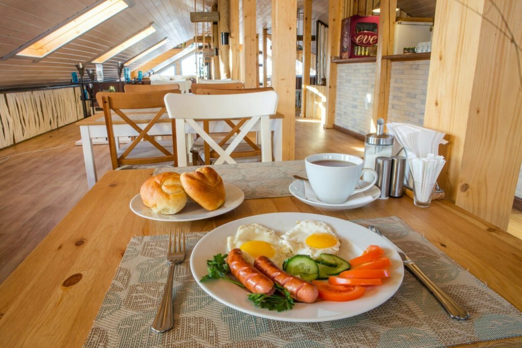 Гостиница предлагает комфортное проживание с завтраком, рестораном, сауной и баней, а также платные услуги трансфера и проживания с животными. Для гостей доступны парк, терраса, детская площадка, прокат велосипедов и водного оборудования, рыбалка, катание на лодках и вечерние развлекательные программы.