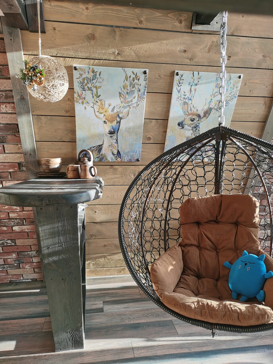 Интерьер хорошо продуман , для тетей будит очень интересно пожить в таких домиках и главное можно рыбу ловить