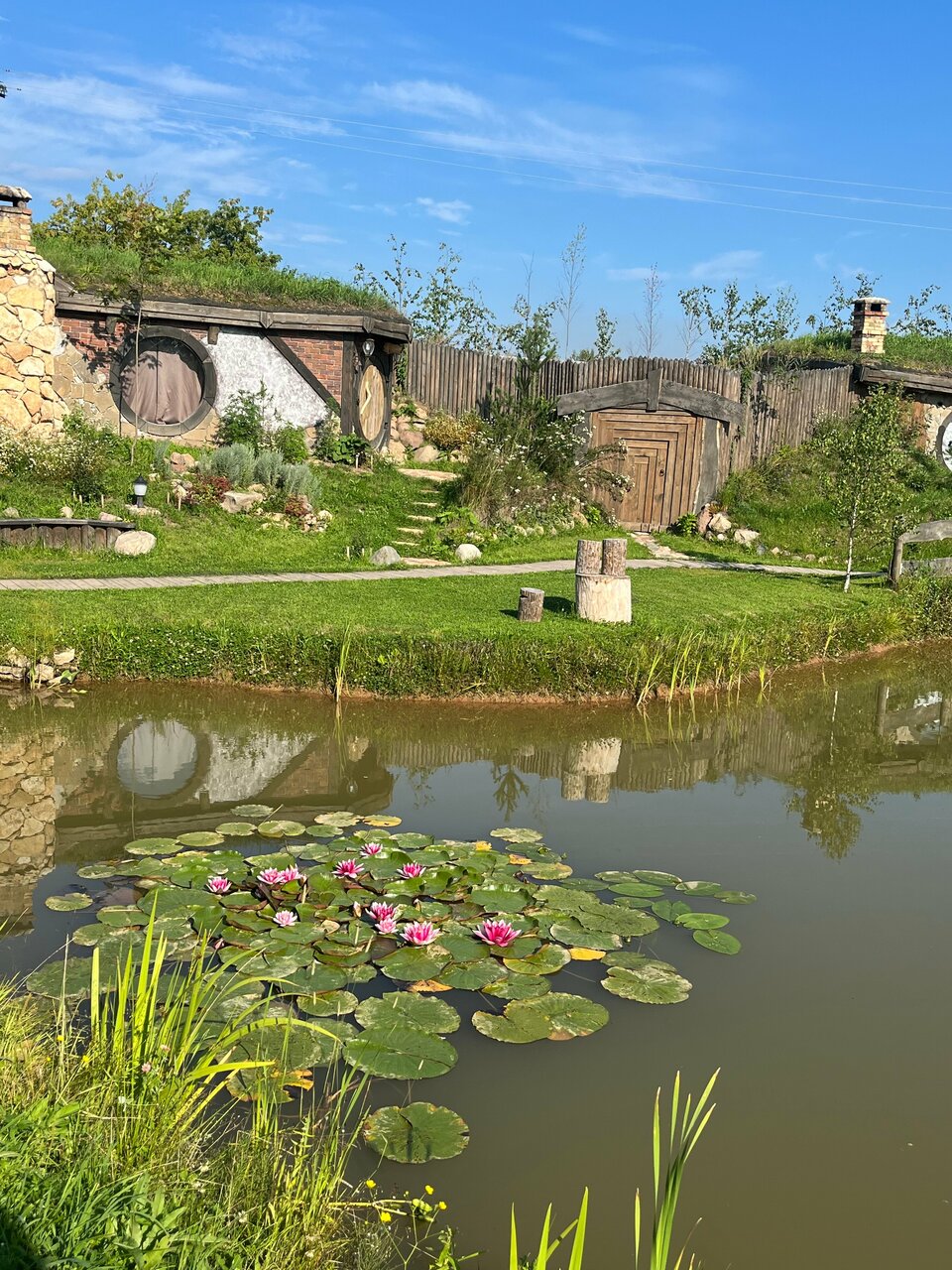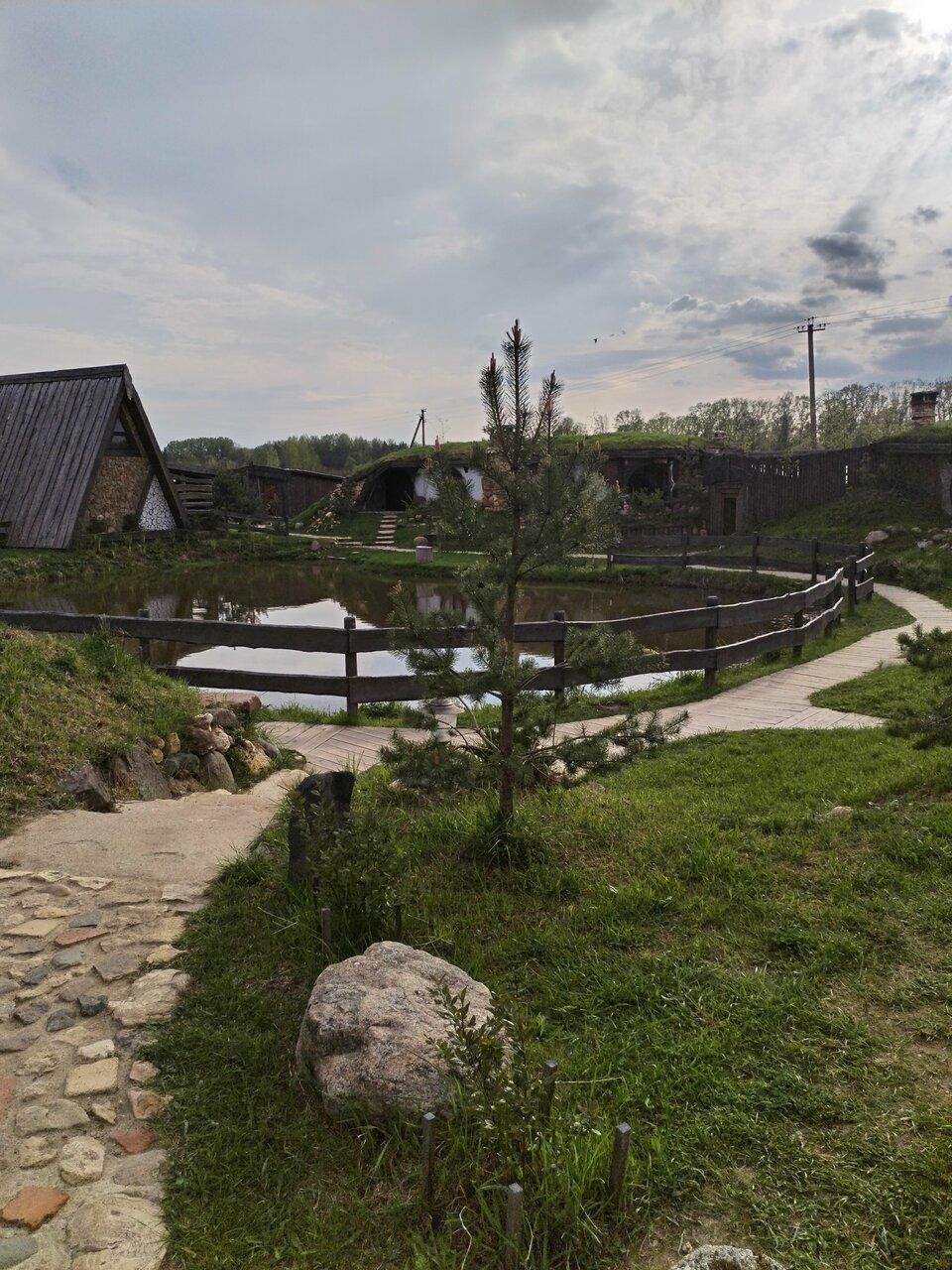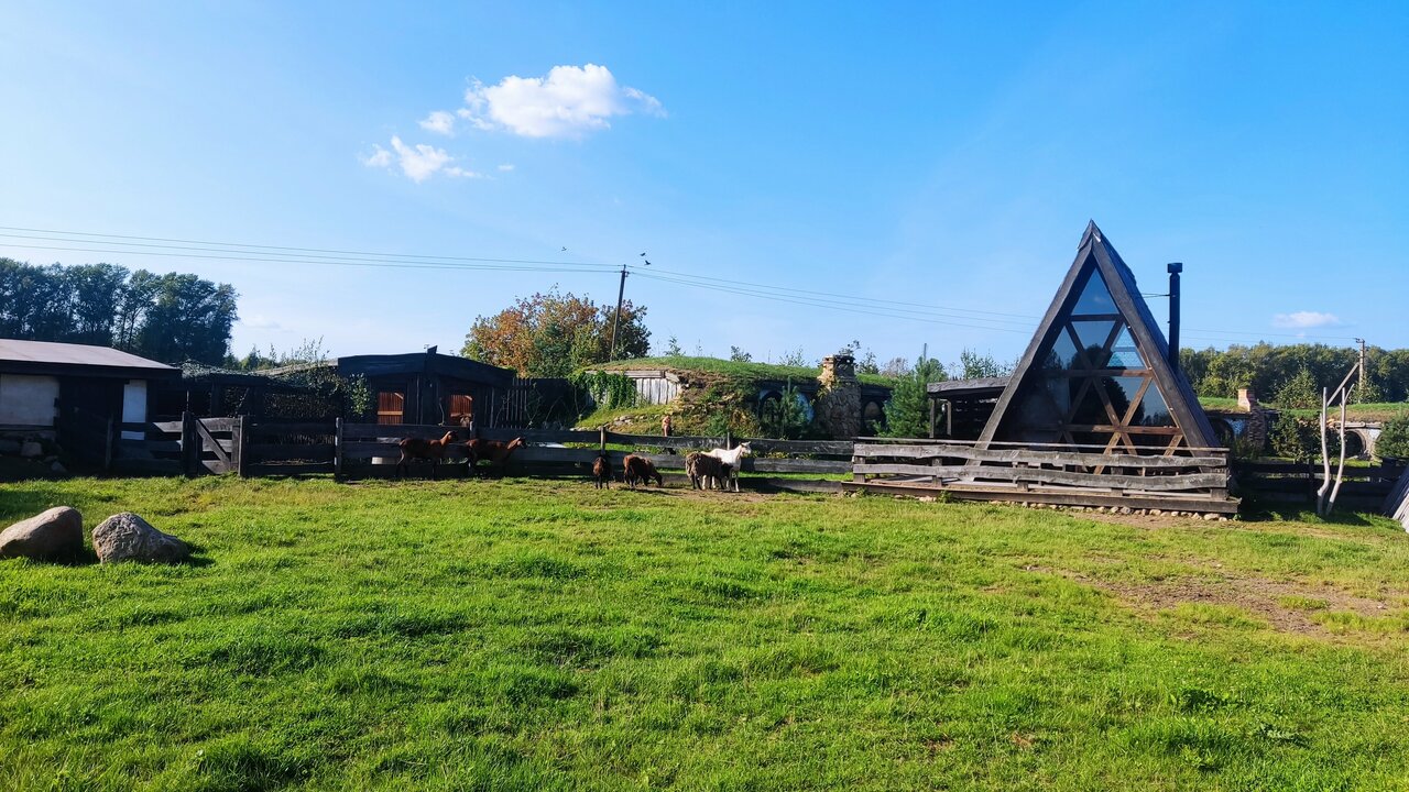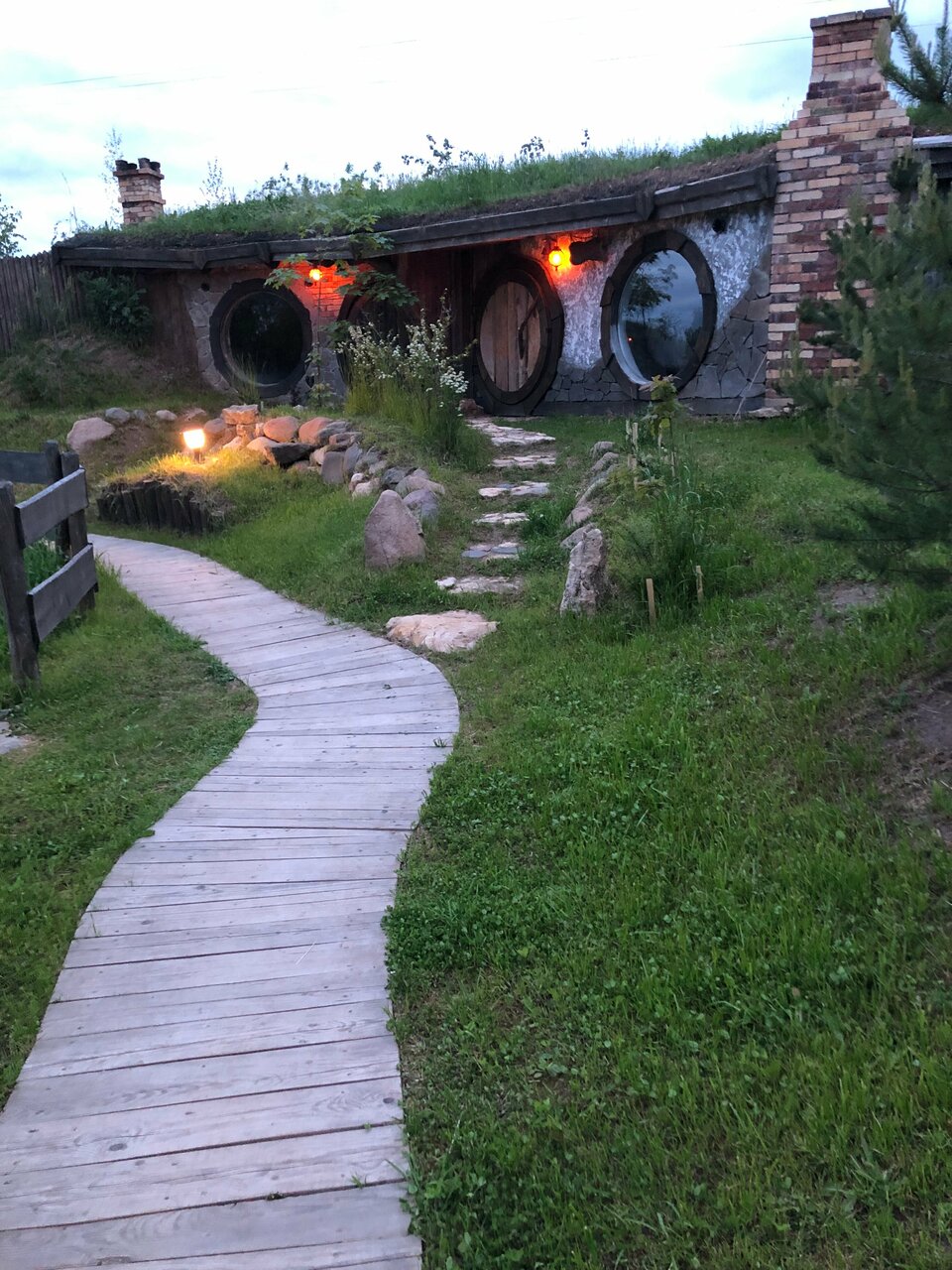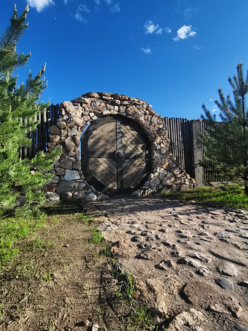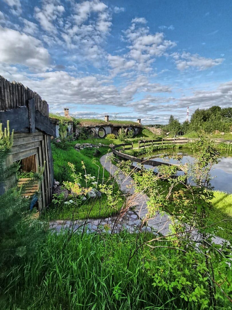 Классная гостиница в стиле хоббитов! Красивые и уютные номера, на полках стоят книги Толкина. Недалеко находится ферма, где можно покормить козликов. Также есть озеро, на котором можно порыбачить.