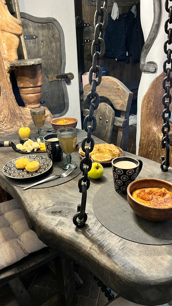 - Отсутствие связи (для желающих отдохнуть от цивилизации).; Контактный мини-зоопарк.; Продуманные детали интерьера (книги Толкина, камины, теплые полы).; Вкусные и сытные завтраки.; Уютная и расслабляющая атмосфера.