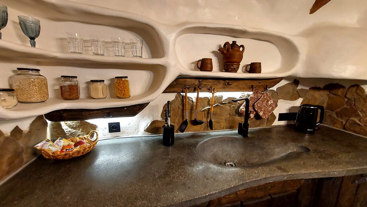 - Атмосферные и оригинальные интерьеры домиков (норы, шалаши).