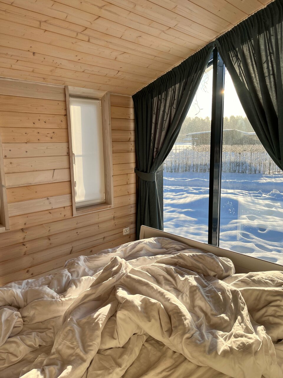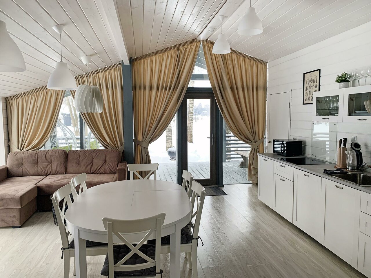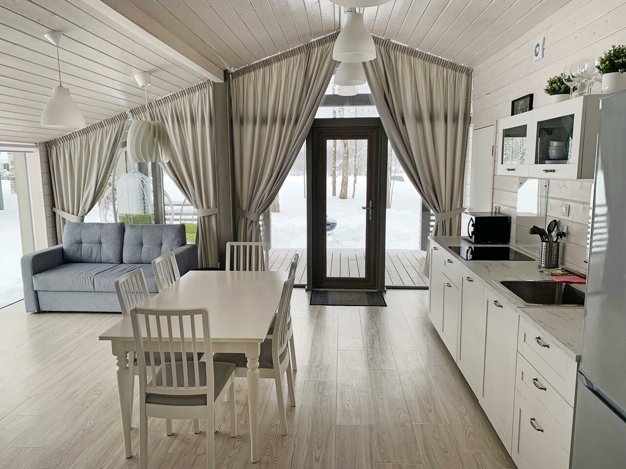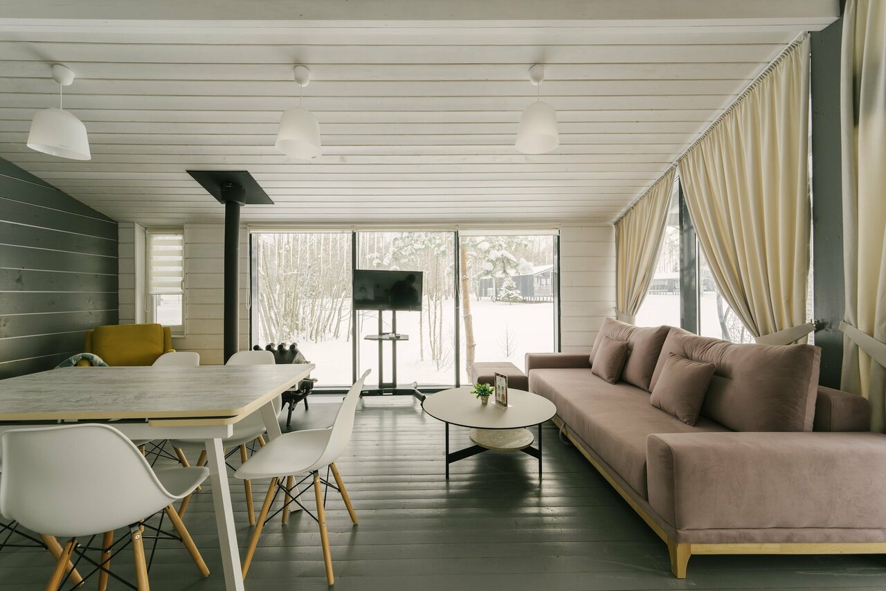 - Панорамные окна в домиках.
