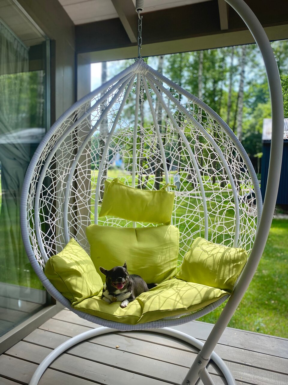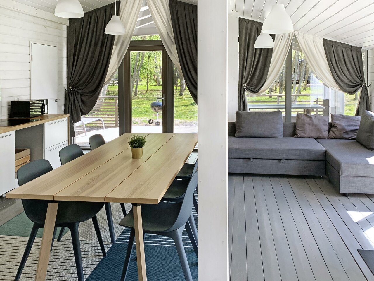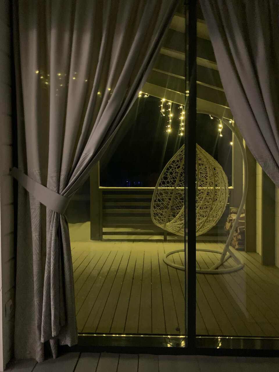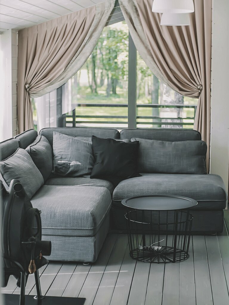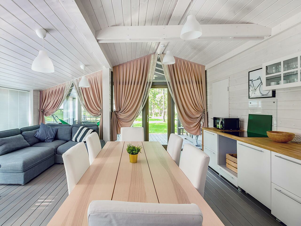 - Панорамные окна в домиках.