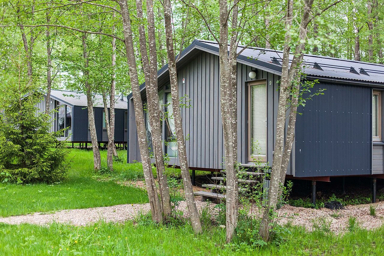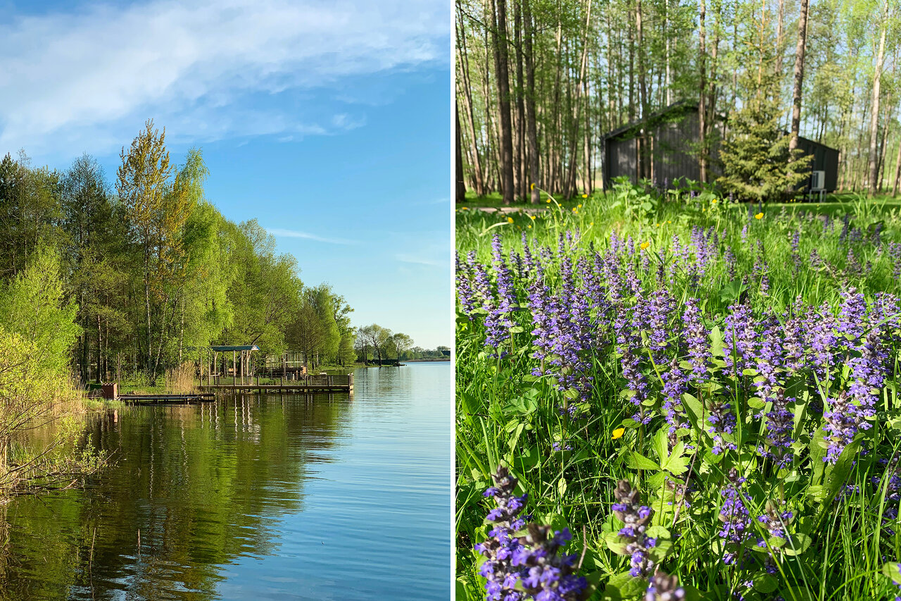 Удобства: — Бассейны (открытый, сезонный, детский), сауна, баня — Ресторан, бар, терраса, зоны для пикника — Тренажёрный зал, прокат велосипедов, каноэ, рыбалка — Детская площадка, игры (волейбол, бадминтон) — Бесплатная парковка, круглосуточная стойка регистрации
