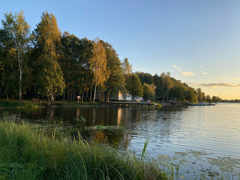 Тихое, уютное место. Прекрасные виды, для любителей рыбалки есть возможность половить рыбу. В домиках все необходимое, для детей небольшая детская площадка. Можно купаться, кататься на катамаранах. Завтрак включен (выбор не прям огромный, но все необходимое есть: яйца, каши, сырники, блины, сосиски, овощи. Можно сделать тосты, нарезка сырная и колбасная). Чай, кофе за отдельную плату.