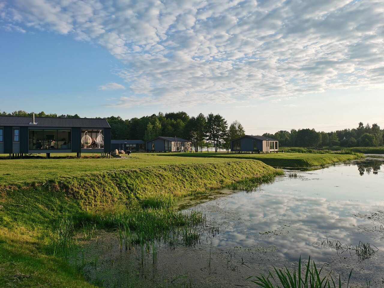 Отличное новое место! Прекрасная экипировка коттеджей, есть даже помудомойка и обеззараживатель воздуха, очень живописная природа, персонал доброжелательный и публика приличная собирается. Трижды была на выходных — тихо и комфортно. Из развлечений — дровяная баня прямо на берегу.