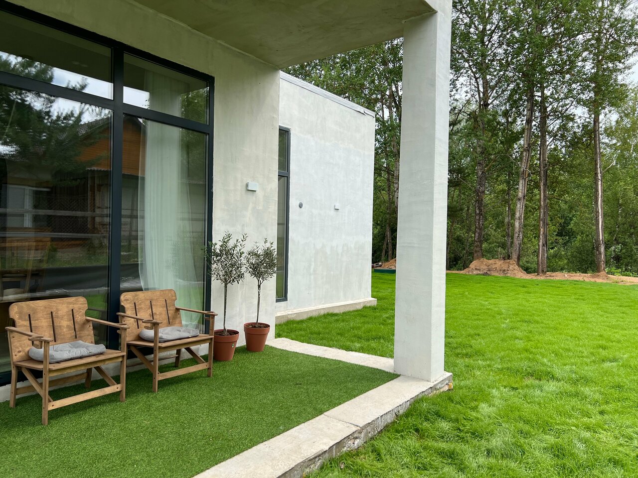 Отличное место вдали от городского шума, в 20 минутах на машине парк ‘Патриот’. Дизайн помещений в очень современном в бетонном стиле, много авторских элементов, большое остекление и высокие потолки. Вокруг красивый газон и в целом чувствуется хороший вкус автора, что оставляет приятное впечатление от дней проведённых в этом месте.