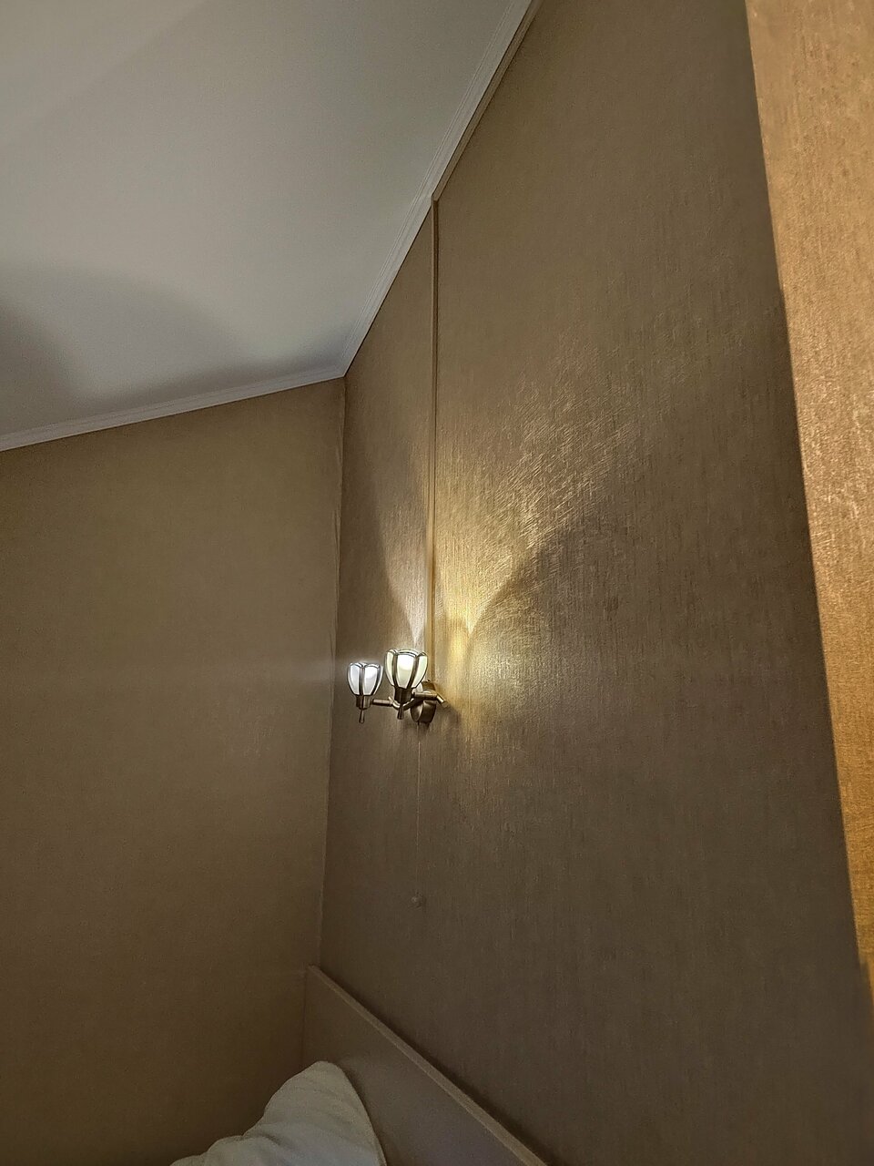 Чисто, накрахмаленное белоснежное бельё ….но…для меня очень важно наличие окон, а в номере, где ночевали их нет, только небольшая фрамуга на потолке, из которой всю ночь падали дождевые капли