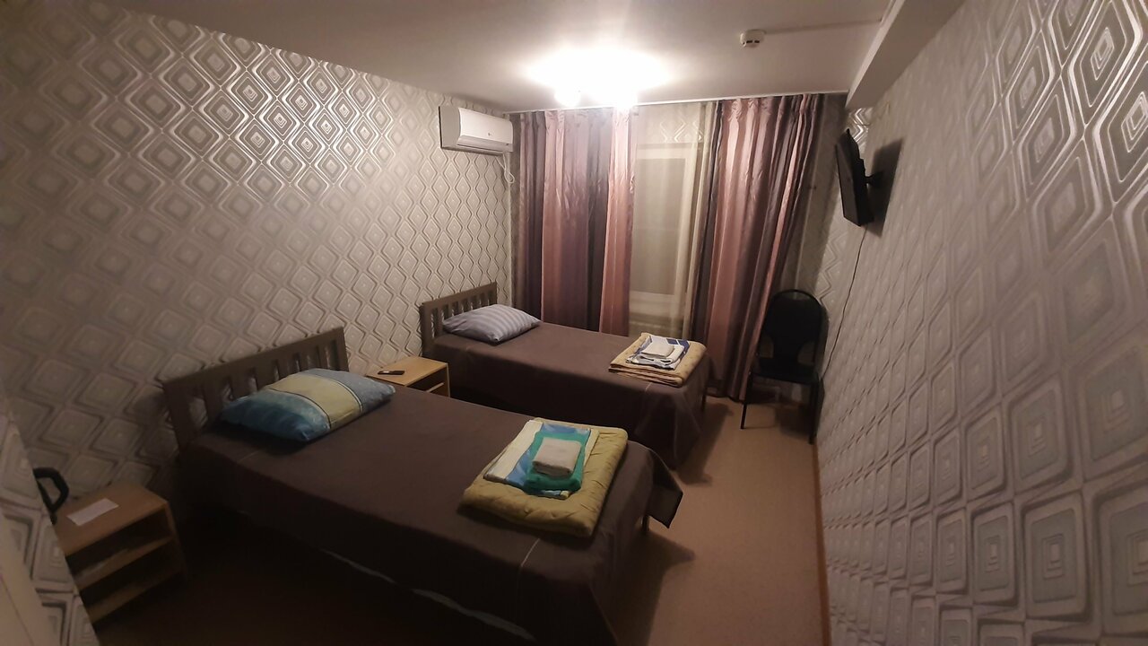 Приехали поздно, попросили два номера или один номер на четверых, переночевать и ехать дальше, нам дали два номера в каждом из которых 4 кровати, ПОЧЕМУ НЕЛЬЗЯ БЫЛО ДАТЬ НАМ ОДИН НОМЕР на 4 кровати, просто переночевать, бред… переплатили… ругаться не хотелось сильно уставшие были, дети на втором этаже, а нас на первом поселили… номера обычные, пол правда неприятный босиком не походишь, постельное синтетика по цвету яркая, дешёвая За такие деньги можно и намного лучше гостиницу найти( стоимость точно не помню от 2100 до 2400) Совдепия, решать Вам, я не рекомендую!!!