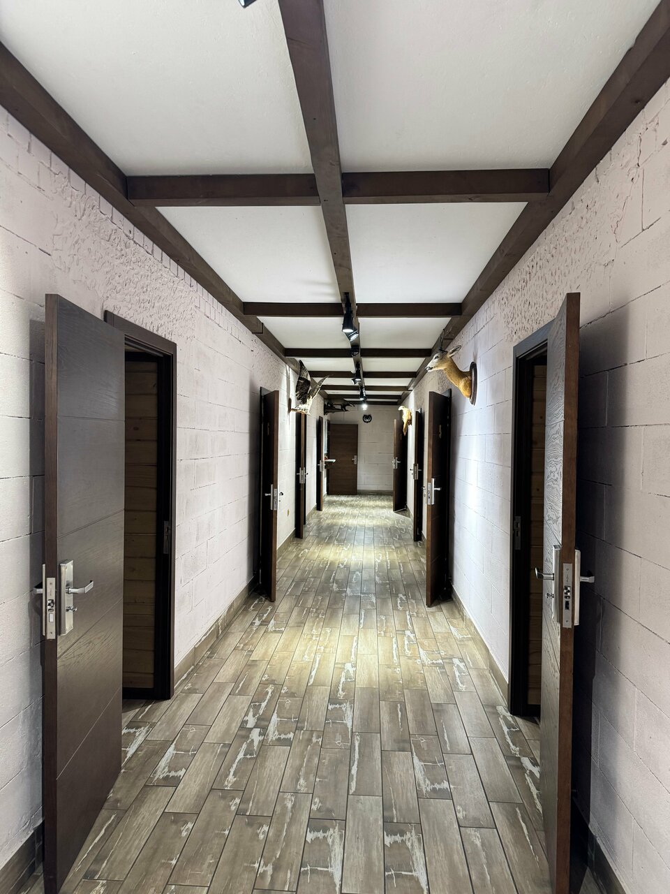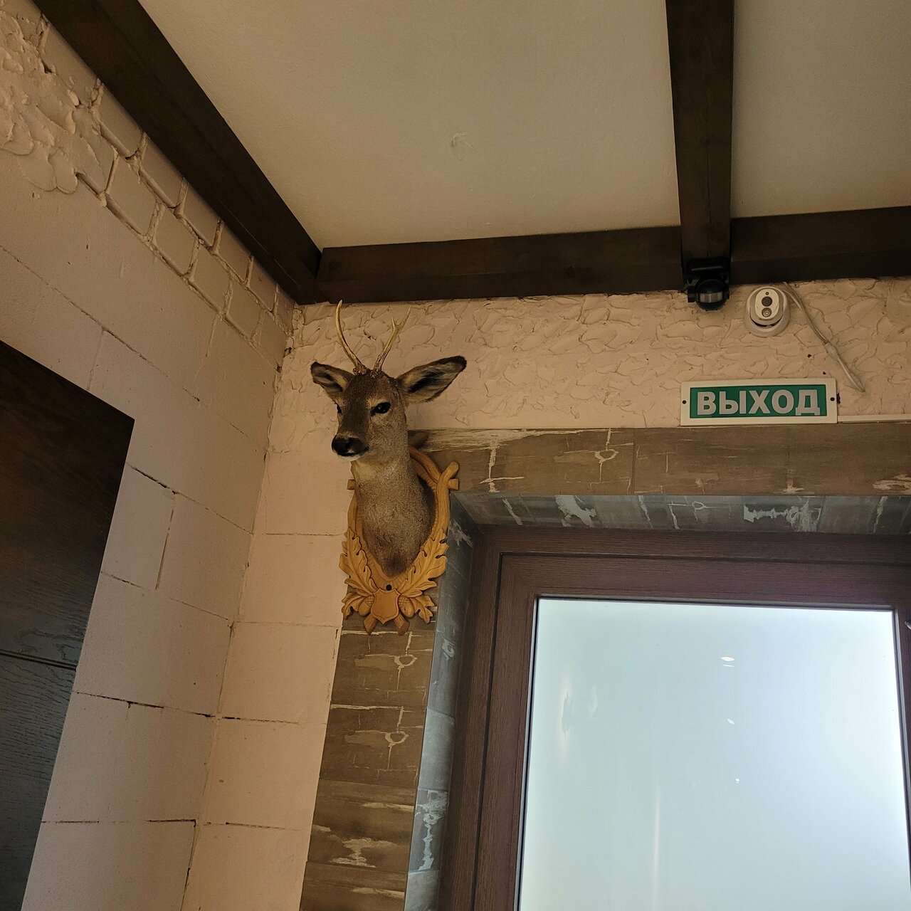Интересный интерьер. Чучела животных на стенах. ‘Зелёным’ там делать нечего))) В номерах чисто и уютно. Одиночки были заняты, заселились в комнату с общим душем и туалетом. Везде чистота и порядок. Минус звезда за слышимость всего происходящего за дверью. Вы будете слышать и шопот, и открывание и закрывание замков на дверях. В общем всё. Но, если у вас крепкий сон или вы устали с дороги это не будет для вас помехой)))