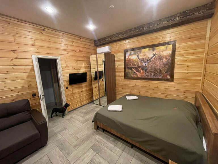 - Интересный интерьер (чучела животных, деревянные стены).; Современное оборудование в номерах (кондиционер, телевизор).; Чистое и качественное постельное белье.; Дружелюбная собака Щепка.; Вежливый и доброжелательный персонал (особенно отмечают администратора Галину).