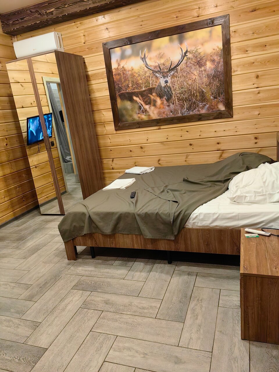 Ехали 26.09.2022 из Геленджика в Н.Новгород. Выбирали первый попавшийся отель на маршруте. Не прогадали. 2000р .Номер уютный, две двухспальные кровати, кондиционер, тв с цифровыми каналами, Быстрый бесплатный WI-FI. тёплые полы (было жарковато), свежее чистое постельное бельё. Туалеты и души чистые. Есть горячая и холодная вода. Единственный минус: под дверью щель через которую слышно всё из коридора. Пришлось из тряпки скатать валик и заткнуть эту щель. Окна 8 номера выходили на лес. Дороги почти не слышно и храп из соседнего номера тоже. Столовая для дороги нормальная 800р за два супа и второе. Вполне съедобная еда. Рекомендую для отдыха.