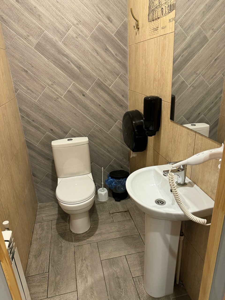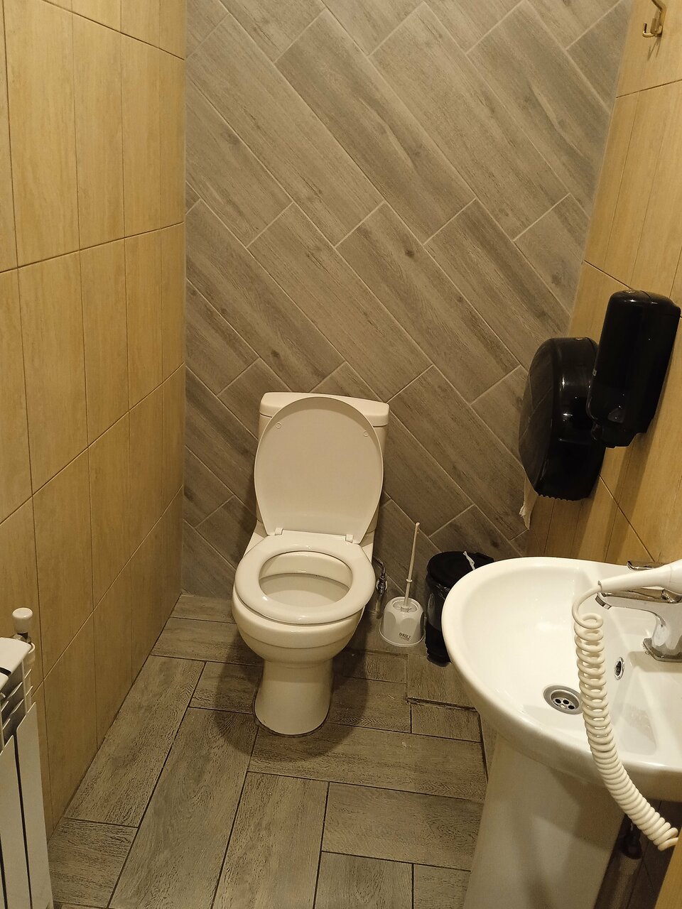 Самый приличный номер 3. Можно открыть окно на проветривание, чистая ванная комната, но почему-то отсутствуют полочки в душевой, вообще ни одной! Персонал и собачка Щепка очень доброжелательные.