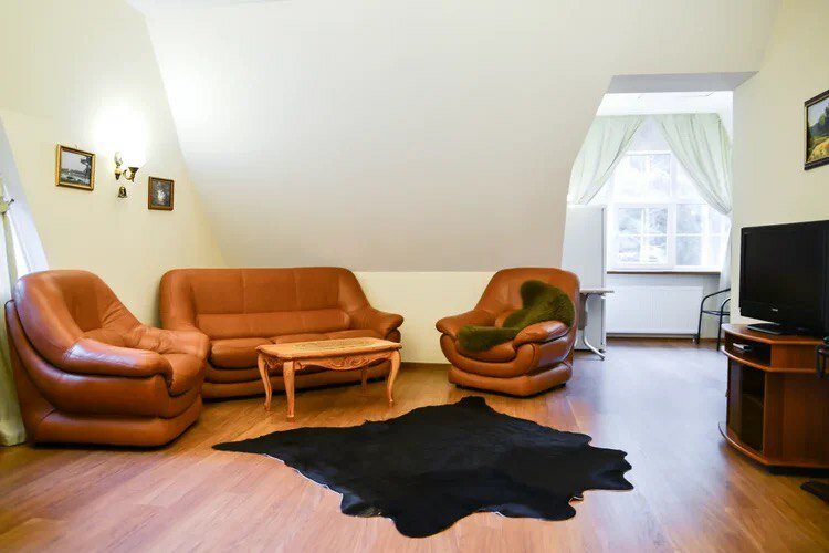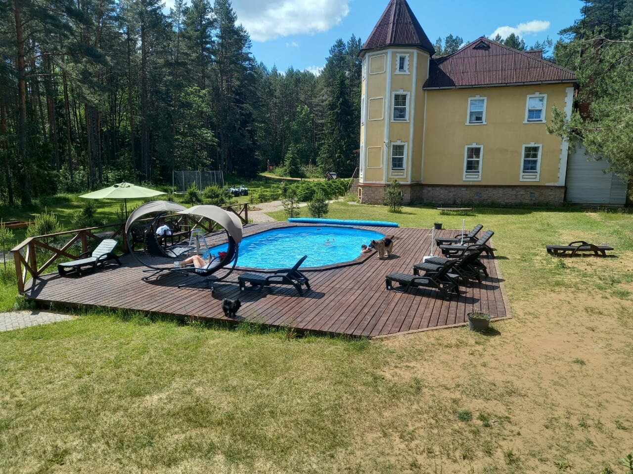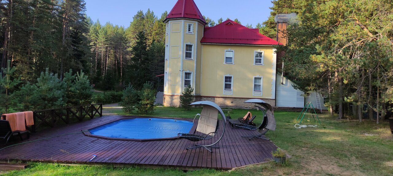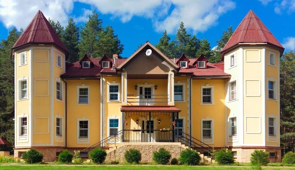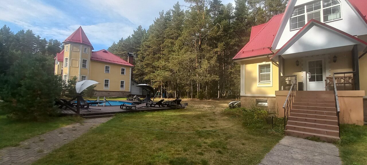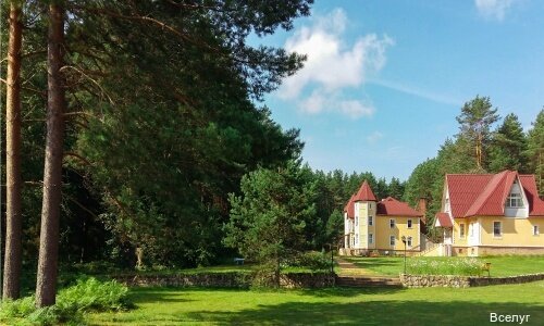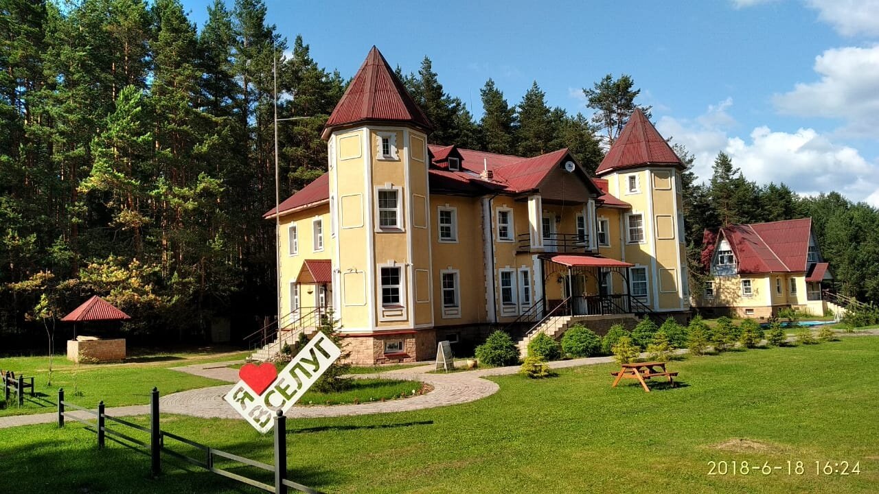 Отдыхали с внуками в июле. Прекрасное место для рыбной ловли, сбора ягод и грибов и для отдыха! Уютное, красивое здание в рыцарском стиле!.. Большой семейный номер на 3-м этаже с двумя спальнями, холодильником и телевизором! Интернет на 3-м этаже не стабильный. Селиться надо на первом или втором этажах. Питание среднее, привередливые дети есть не будут. Советую брать с собой дополнительные продукты и средства против комаров. Есть лодки, катамараны, теннисный и бильярдный столы, беседки для барбекю. Рекомендую для отдыха!..