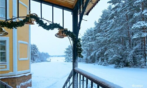 Услуги: — Проживание в номерах с Wi-Fi, телевизором, холодильником, феном. — Питание: ресторан, кафе, варианты завтраков и полного пансиона. — Активный отдых: рыбалка, верховая езда, прокат велосипедов, лыж, водные виды спорта. — Инфраструктура: собственный песчаный пляж, бассейны (открытый, подогреваемый), сауна, баня, SPA, каток, детская площадка. — Для мероприятий: конференц-зал, банкетный зал. — Дополнительно: парковка (бесплатно), трансфер, проживание с животными (платно), камера хранения.