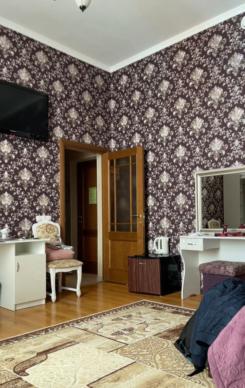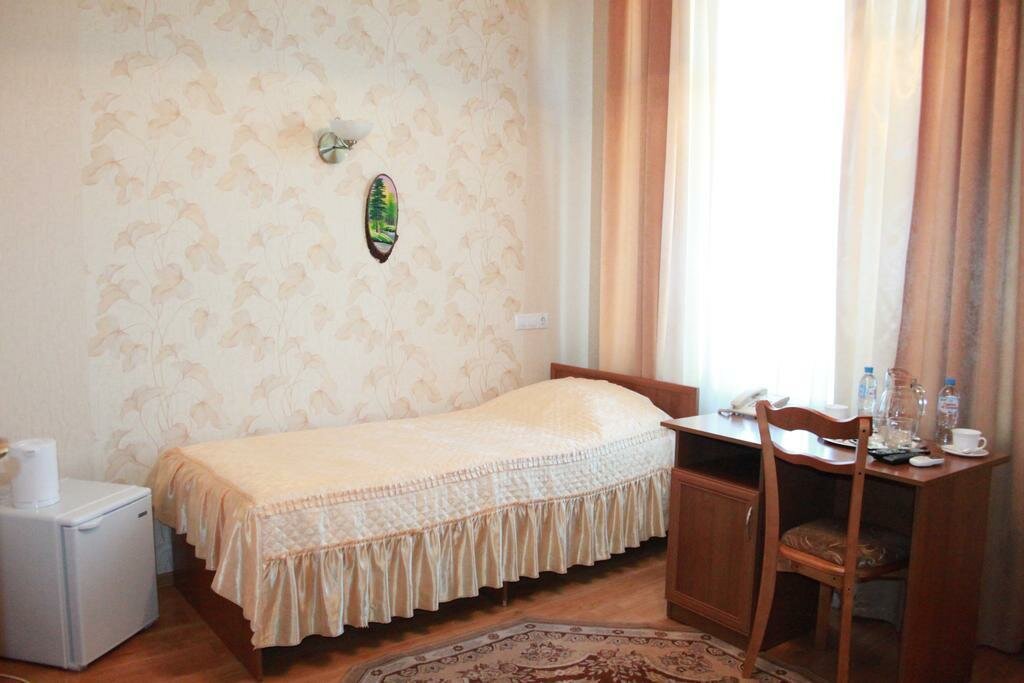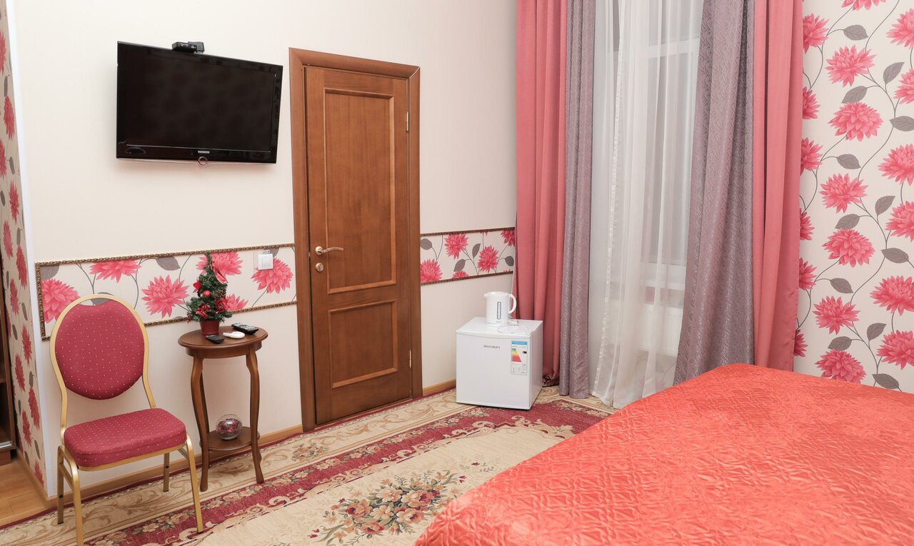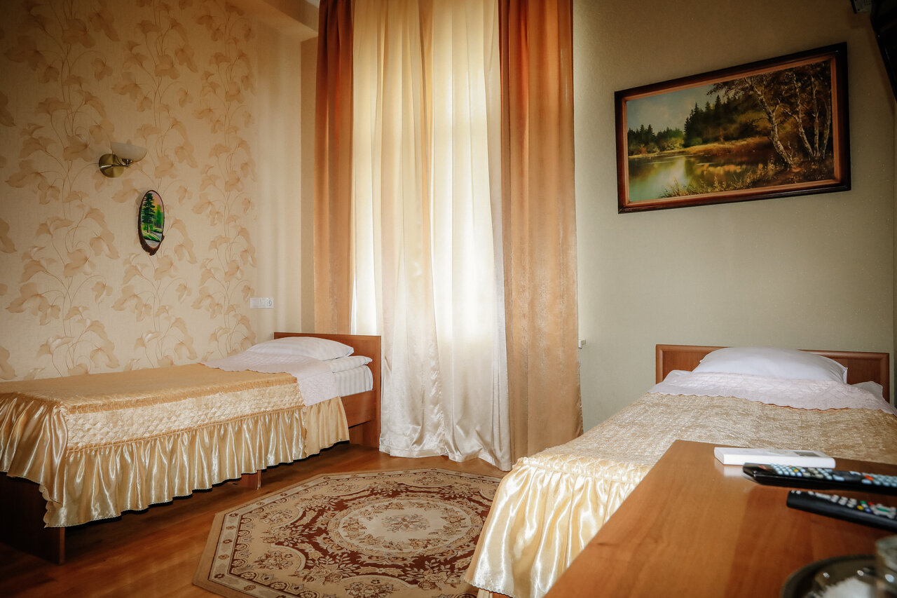 Неплохой отель, но: В номере есть чайник, но чая нет. На этаже есть кулер, но нет воды. Есть телевизор, но на большинстве каналов нет сигнала. Администратор в ночь с 22 на 23.08 закрыла на замки все двери и ушла спать. Утром, чтобы выйти, администратора будили 20 мин, вместе с водителем. Он снаружи, я внутри отеля. В отеле нет ни кафе, ни ресторана