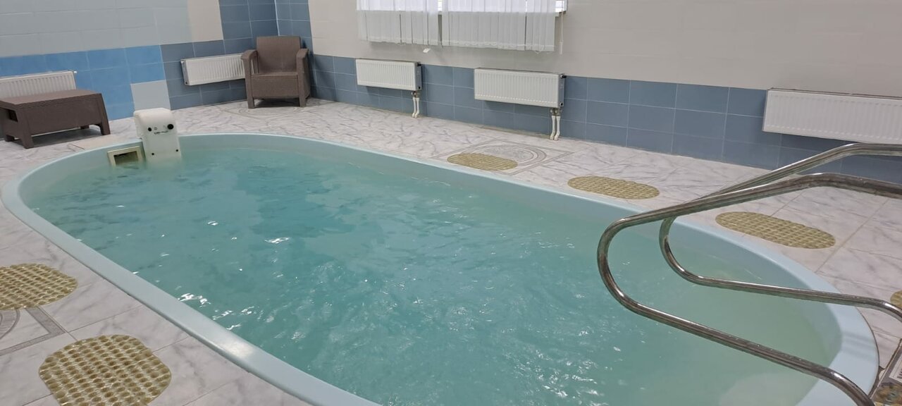 Были семьёй в бассейне, вода правда прохладная +24, но после сауны или хамама ничего. Есть стол со скамейками, микроволновка. Если нужна еда, то нужно заранее искать, где заказать, т к везти долго