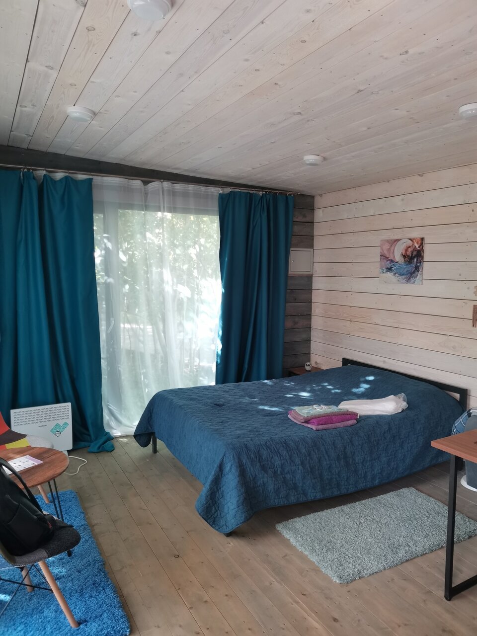 Снимали домик с двумя спальнями. Было две семьи Домик отличный. Маленький, но очень уютный. Есть всё что надо из посуды, всё чисто. Единственное что не понравилось — очень маленькие спальни, даже с открытым окном было душно. И близость с соседями. Буквально окна в окна. Звезду сняла именно за близкое расположение домиков друг к другу, и за скучную территорию. Погулять с ребёнком кроме как на детской площадке негде вообще. Но большой плюс что на площадку выходят окна домиков, смело можно отпускать деток играть одних.