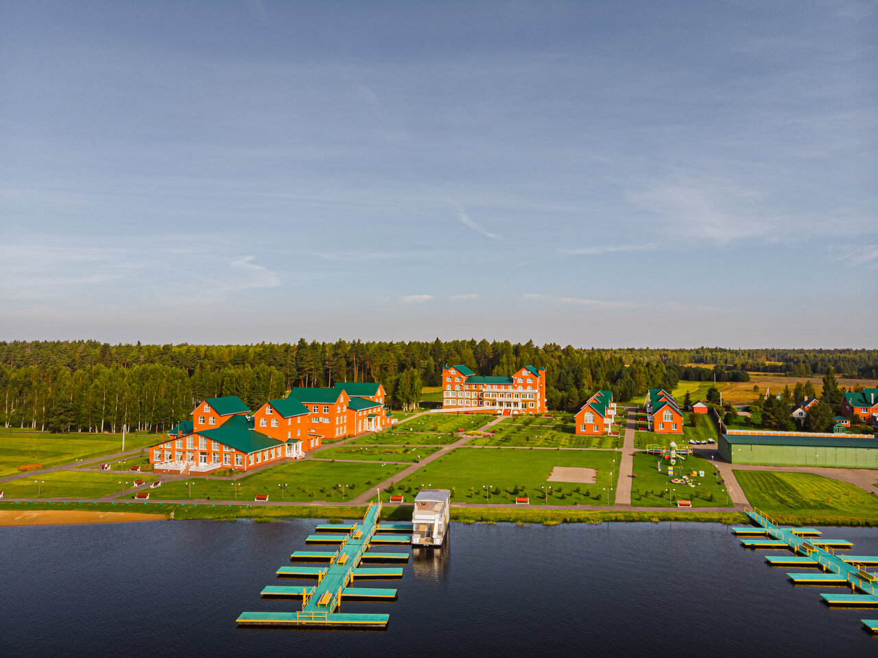 Неплохое место, если хочется тишины и покоя на берегу водоема. Ухоженная территория, прекрасный вид на реку, летом можно прийти на катере. Интерьеры несколько старомодны, но номера чистые и просторные. У владельцев гостиницы есть свое фермерское хозяйство, обязательно туда сходите ( около 1 км от гостиницы), все чито и ухожено. Можно приобрести их молочную продукцию, сыры. Она же присутствует в шведском столе в ресторане. Еда вкусная, порции огромные, ребята официанты отлично работают. Особенно хочется отметить официанта Дмитрия. С его стороны внимание к каждому посетителю и к любой просьбе. Мы приехали очень поздно в первый день, но нас дождались и были созданы все условия, чтобы мы получили удовольствие от ужина.