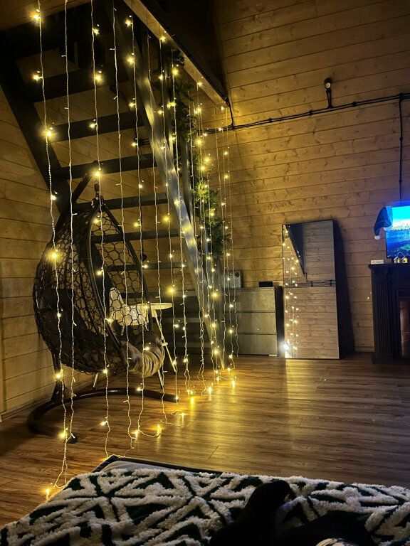 - Просторная ванная.; Полная комплектация (фен, посуда, спальное белье, халаты, тапочки).; Близость к реке, пляжу, природе.; Стильный, новый и уютный домик.; Украшение к праздникам (гирлянды, новогодние атрибуты).