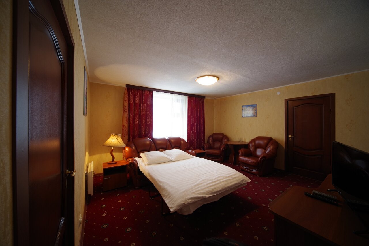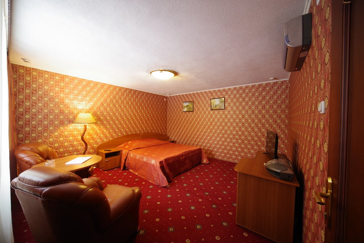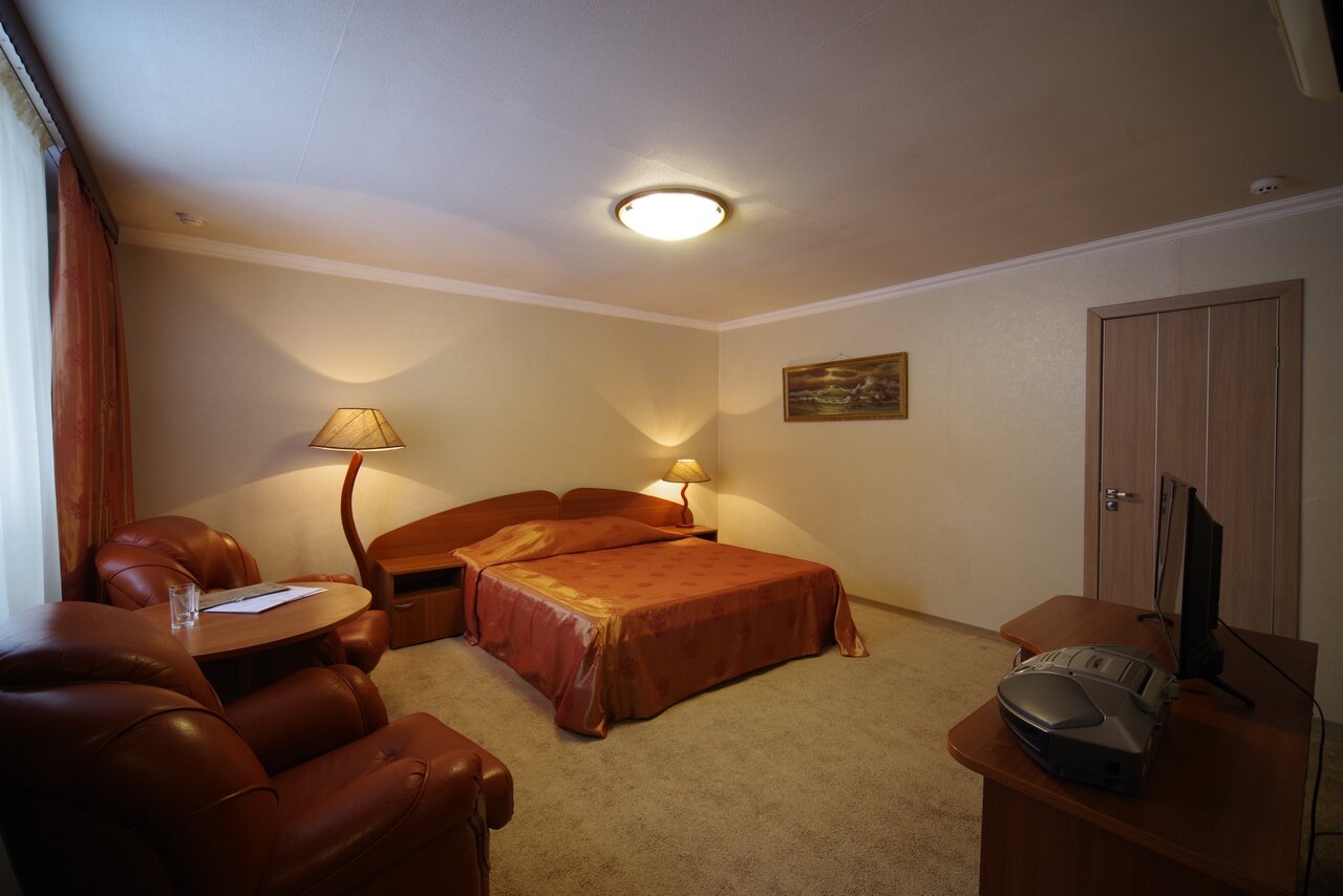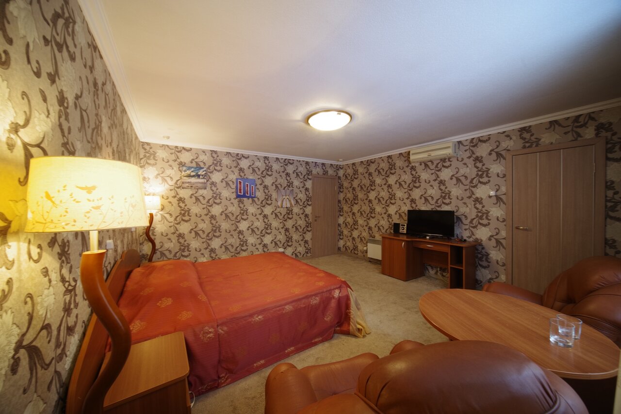 Номер с двуспальной кроватью, собственной ванной комнатой, телевизором,Wi-Fi и индивидуальным отоплением.Возможна установка дополнительного места - 1000 руб.