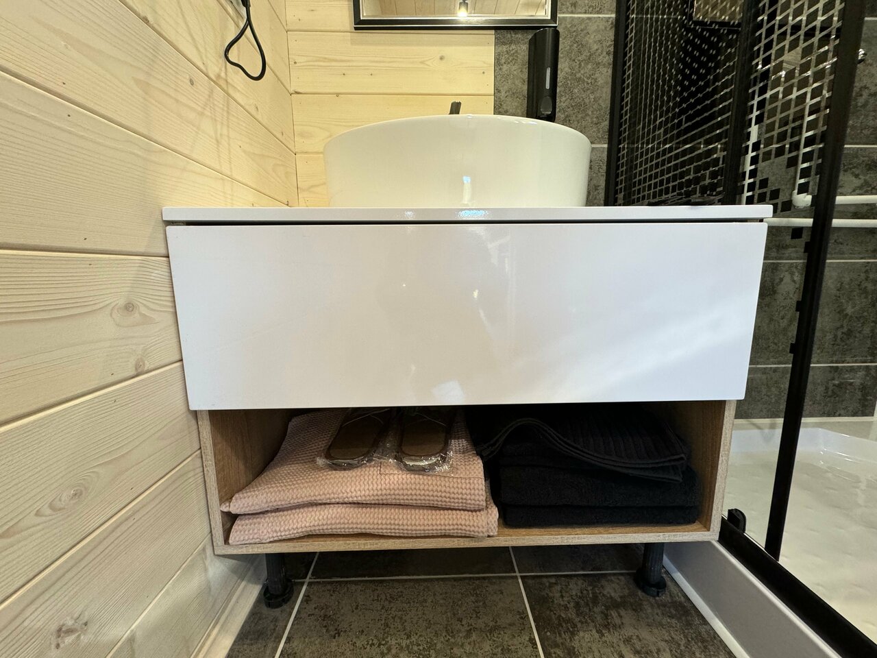 Новые уютные домики со всем необходимым. Посуда, халаты, тапочки, бокалы, шампура и решетки. Рядом с домиками — мангал. С поздним заселением проблем не возникло. Можно взять сапы в аренду. Сейчас ремонтируют дорогу к населенному пункту — нужно быть готовым к этому.
