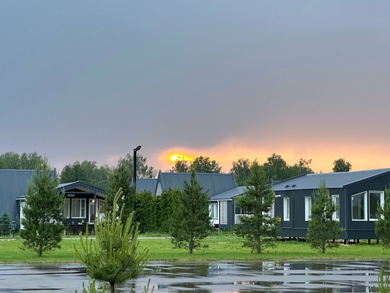 Обалденное место!Домики идеальные,построены качественно.Нет сырости ,в доме тепло.Погода была не очень +15,но мы даже не просили включить отопление!!Идеальные асфальтовые дорожки,у дома все выложено плиткой,красивый газон.После очень сильного ливня нет грязи ,дорожки быстро высыхают.Есть два каркасных бассейна,чистые и ухоженные.Природа шикарная!Очень красивый пруд,как в сказке.И главное далеко от трассы,тишина и спокойствие.Спасибо за прекрасный отдых!