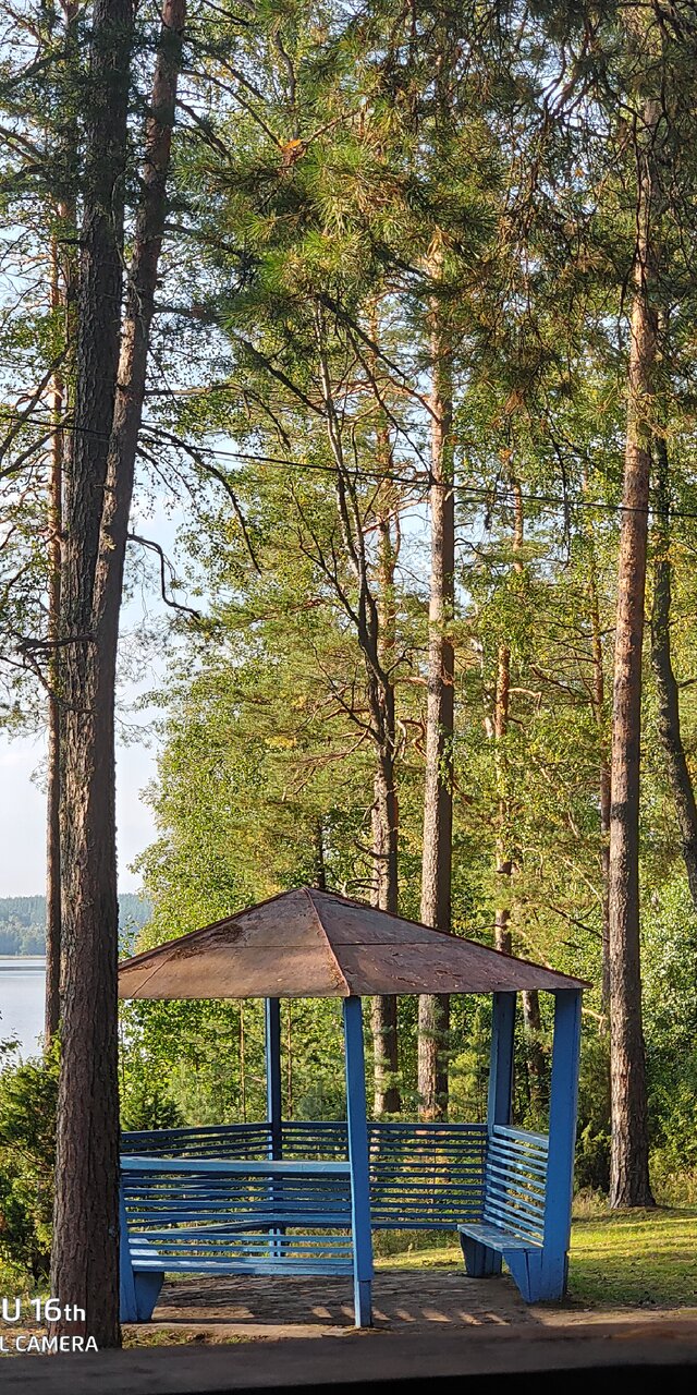 - Красивое место у озера и в сосновом лесу.