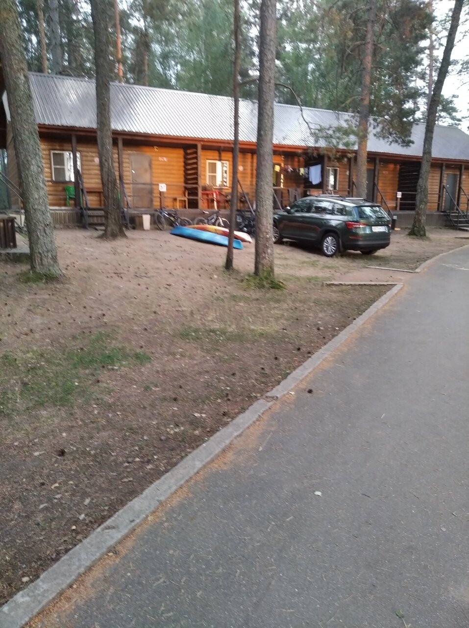 Один-два раза в год останавливаюсь там. Хорошо, удобно. Рядом с дорогой, на берегу реки. Сосны, воздух — красота! Кафе с нормальной едой.