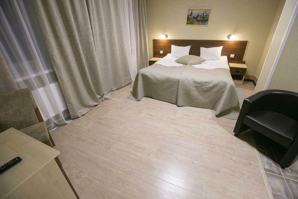 Стандартный двухместный номер. Одна двуспальная кровать, телевизор с плоским экраном, холодильник, кондиционер, Wi-Fi, собственный туалет и душ, электрический чайник, фен, средства личной гигиены, доставка питания в номер.