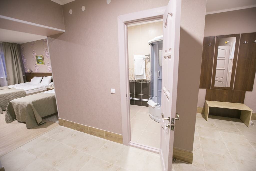 Проживали в гостевом доме (3). Чисто, всё удобства есть: холодильник, микроволновка, чайник, посуда. Плохая вытяжка в ванной, бюджетная сантехника. Но это не главное) Удобно расположен, рядом сетевые магазины, тихо. Персонал очень приветлив, вежливые, улыбчивые. Отдельно спасибо за еду — вкусно по-домашнему.