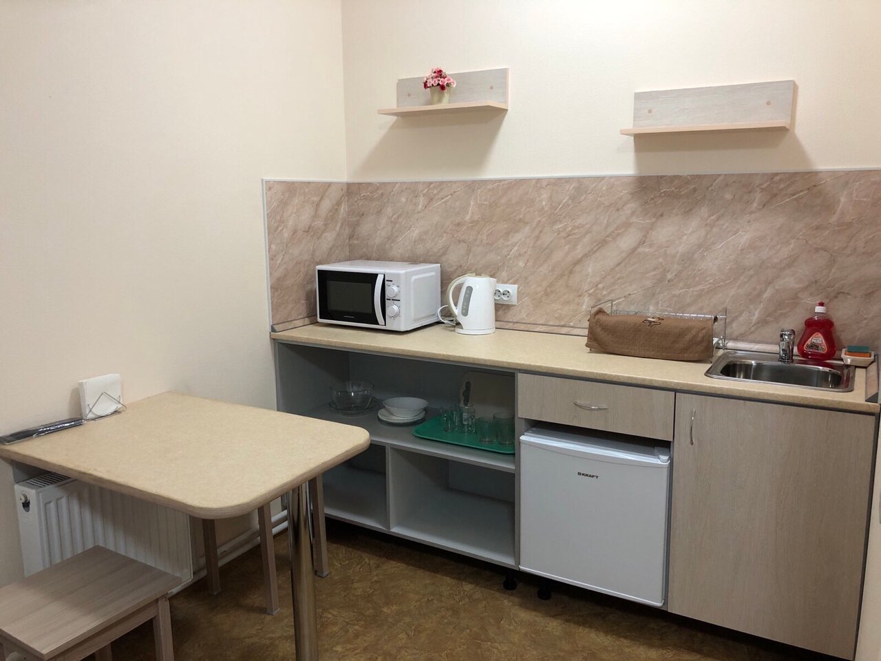 - Наличие необходимой бытовой техники (чайник, холодильник, микроволновка).