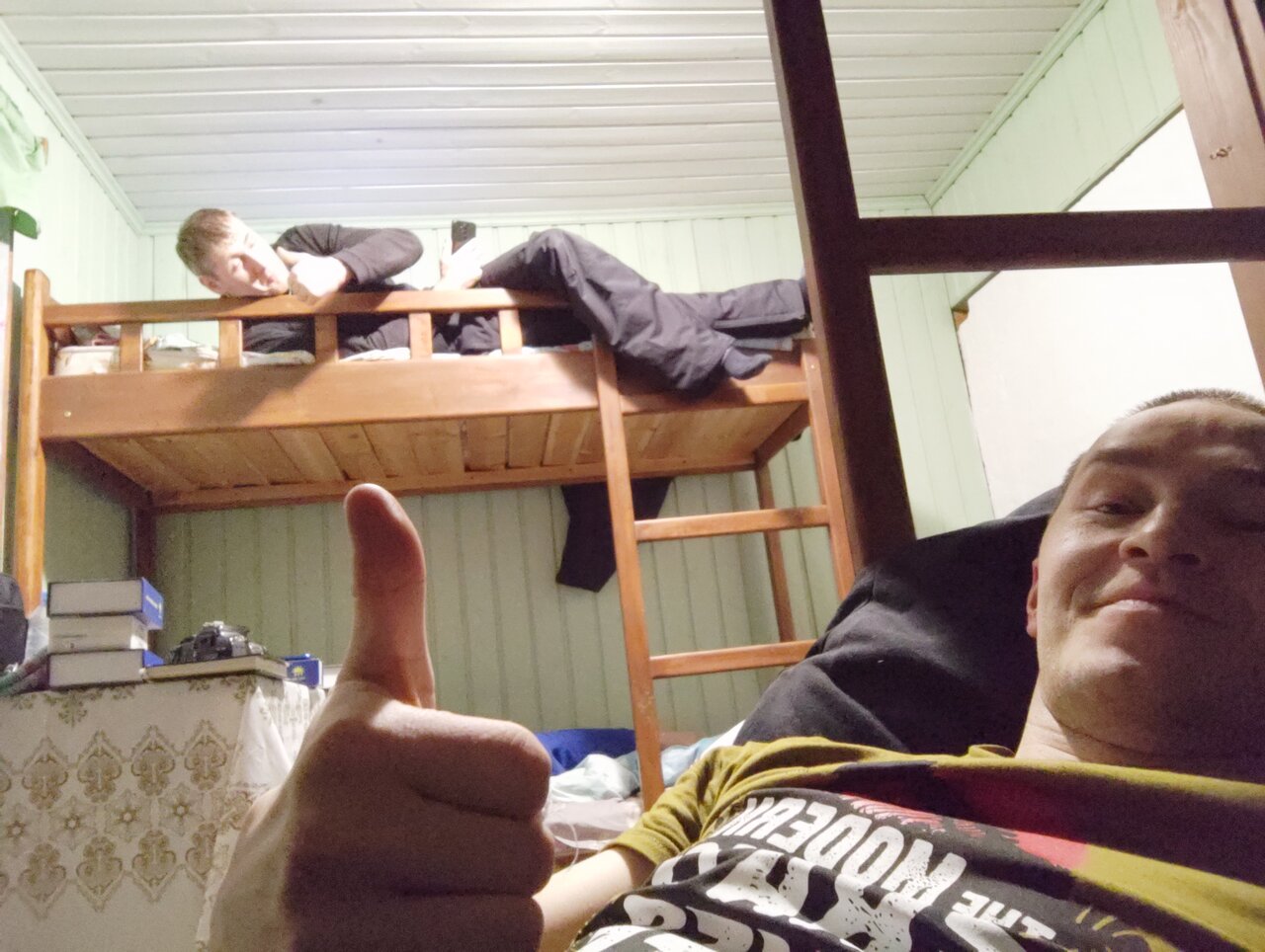 Место по расположению хорошее, через дорогу озеро, из удобств есть кухня (плита, чайник, посуда, миароволновка, раковина), есть печька. В комнатке 2 двухярусные кровати. Остановиться на ночь, вполне. Жить неделю.. ну это кому как. На улице было +18, для нас заранее протопили печку немного, чтоб было тепло, но минусом стало то что на втором ярусе спать было очень жарко, поэтому отдохнуть толком не получилось. На первом ярусе было помфортно. Не забудьте взять фумигатор, чтом кровопийцы не скушали. Вторым сюрпризом стало то, что поставив машину на стрянку возле дома, утром обнаружил проколол колеса, пришлось с утра ставить запаску. Аккуратнее там, видимо гвозди или еще что на стоянке.