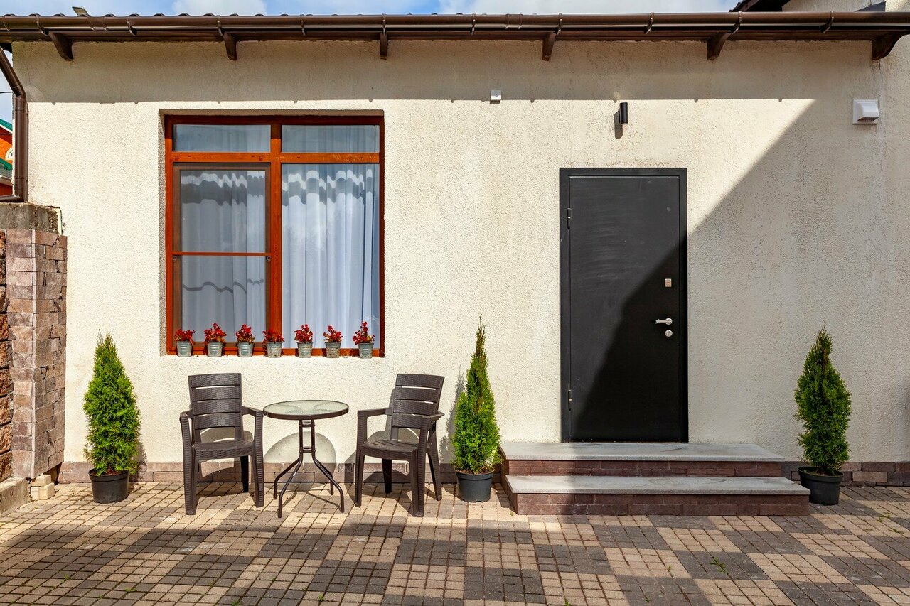Симпатичный стиль, приятный и услужливый персонал, просторный номер, есть даже кухонная зона в номере, дворик. Жаль только, что окно в спальне затонировано