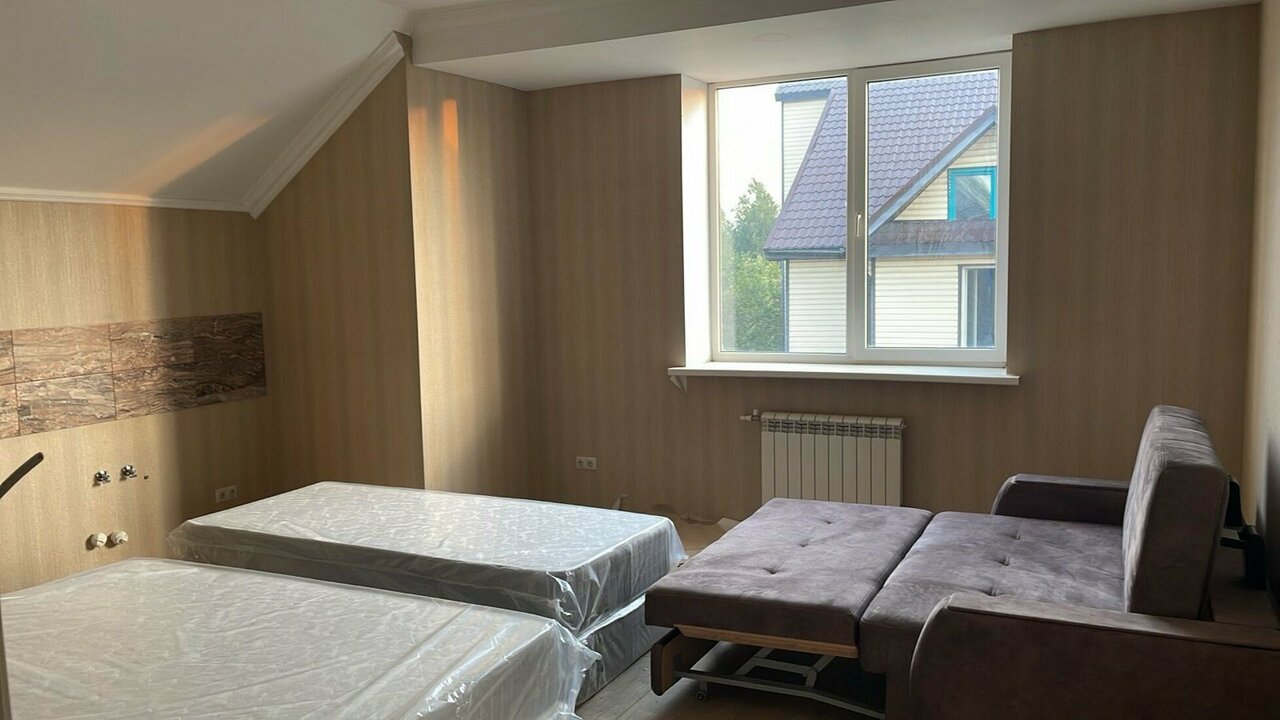 Студия улучшенная площадью 49 кв.м с видом во двор.Подходит для размещения 4 человек. (3 основных места и 1 дополнительное)Имеет спальню с приятным интерьером.В номере: 3 односпальные кровати Имеется: мини кухня, посуда, телевизор, конд...