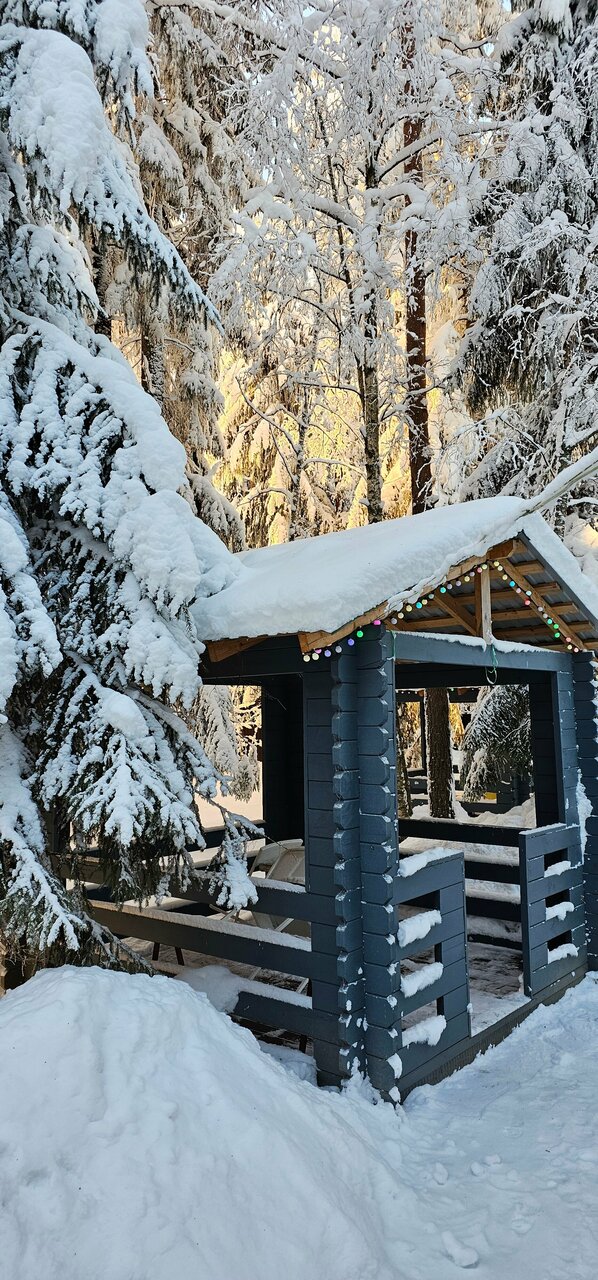 Перед Новым годом жили два дня в большом коттедже (N6). Эта та ситуация, когда заходишь в дом, и понимаешь, что тебе здесь уютно, как дома. Комнатки небольшие, но комфортные. Большие удобные комоды для вещей. Везде чисто. Посуда вся есть. Даже соль и сахар)) Банька шикарная, безлимитная!!!! Территория вокруг красиво украшенная, прямо за домиком начинается лес. Спасибо большое за отдых приветливым хозяйкам!