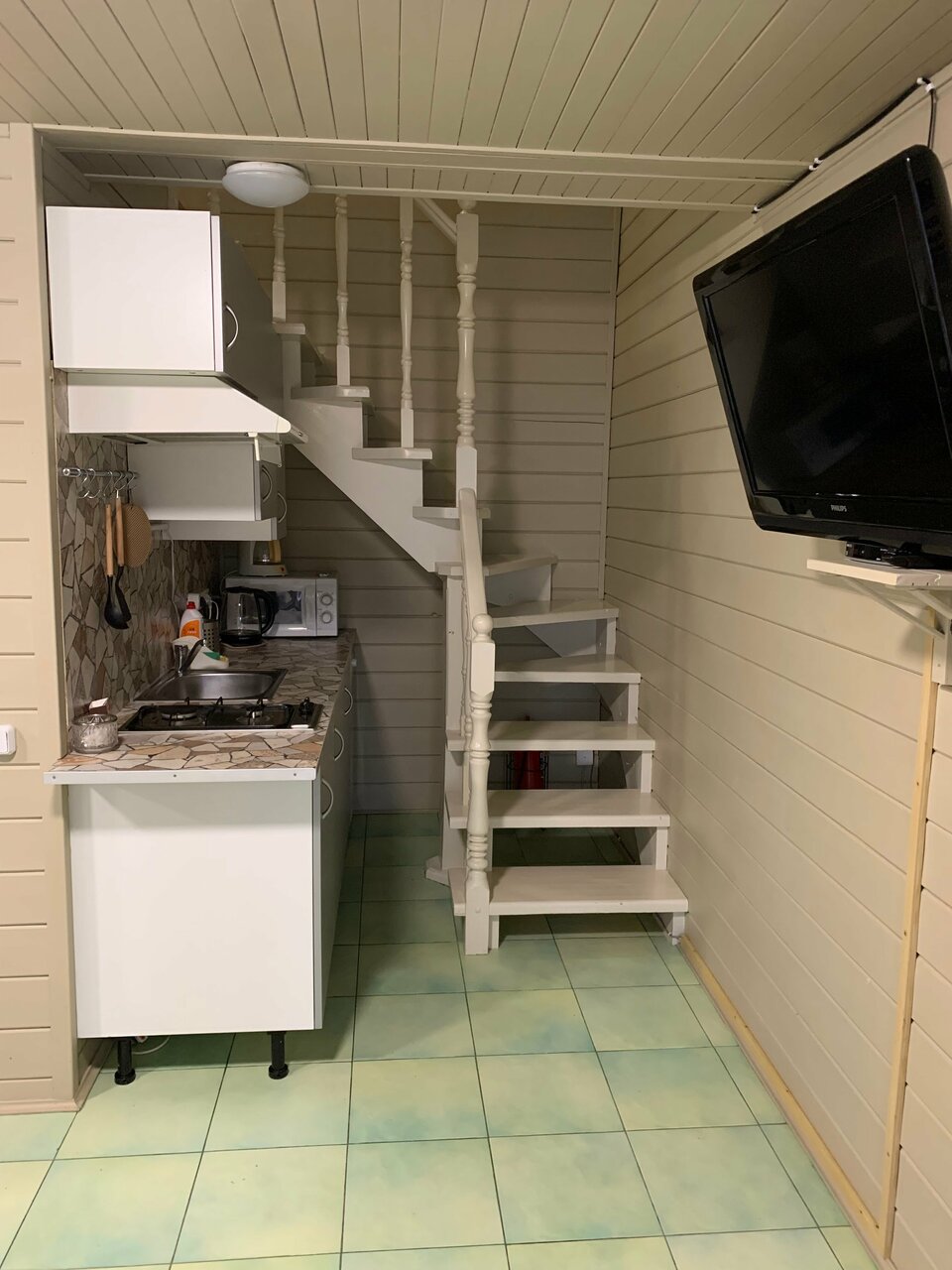 Телевизор работает через раз, нет никаких запасных принадлежностей: бумага, пакеты. Даже стаканчика под зубные щетки не обнаружено. В двери дома сломана ручка. Перьевые подушки — лично для меня тоже было удивление для съемного жилья. (Как минимум не гигиенично, а еще и аллергикам на радость). Сам домик красивый, убрано. Но на крыльце прилеплена жвачка на перилах, на стене нарисовано ручкой — наверное жил ребёнок… Доехали на такси без проблем, уехали тоже.