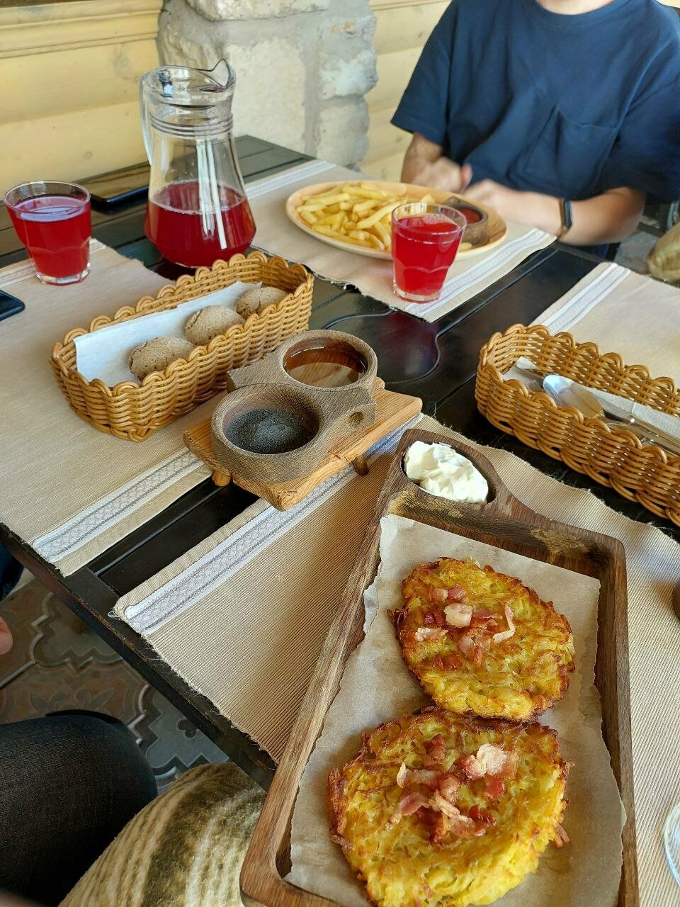 Шикарное место — природа, крепость в шаговой доступности. Сама гостиница в три этажа, есть номера люкс, свадебный, семейные. Внутри с антураж, есть зона для детей, чтотне мало важно По номеру с двуспальной кроватью. Из плюсов — чисто и аккуратно, полотенца и для лица и для тела и для ног. Одноразовые средства для мытья тела и головы. Кровать двуспальная, удобная, постельное простое, но чистое и приятное к телу. А дальше минусы… Тапочек нет(только для луксовых), шкафа нет, вешалка для верхней одежды. По еде Завтрак входит в стоимость, в целом неплохо- разнообразные блюда, напитки, фрукты, блинчики, бутерброды. По качеству на четыре с плюсом. Так же есть место с мангалом и столами. По желанию можно шашлыки.