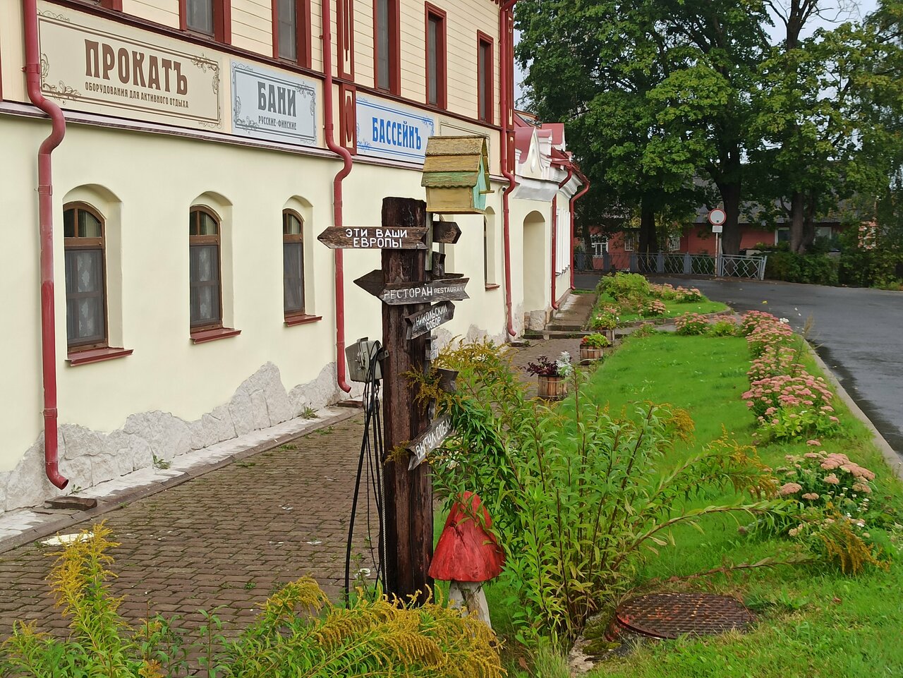 Небольшая и очень уютная гостиница в деревне Изборск. Внутри — интерьер и атмосфера старой дачи или старой усадьбы. На сайте написано ‘атмосфера уюта и провинциального тепла’ — вот так оно и есть. Раз 5 или 6 останавливался в Изборске и всегда только в этой гостинице. Брали номера ‘комфорт’ и ‘семейный’. Чисто, тепло (конец октября), тихо. Единственный минус: нет кондиционеров. Также не во всех номерах есть холодильник. Очень вежливый персонал. Мебель в номерах простая, но удобная и мне тоже напомнила дачную. В гостинице — отличный ресторан (см. мой отдельный отзыв ‘Ресторация Изборск’). Своя бесплатная парковка. При гостинице живут 2 или 3 кота. Один не очень общителен, а два другие — интеллигентнейшие существа (см. фото)! Все достопримечательности Изборска — в шаговой доступности. Про баню и бассейн при гостинице сказать не могу — не пробовал. В общем, будете в Изборске — очень рекомендую эту гостиницу.
