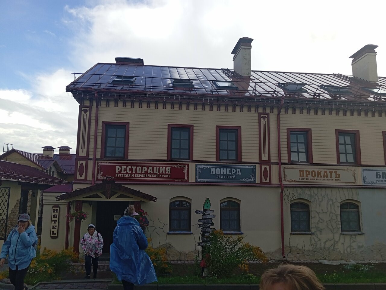 Очень интересный отель, самобытный, запоминающийся. Огромная изба с внутренним двориком. Все ухожено, чисто, сделано и содержится с любовью к каждой мелочи. Очень понравился детям. Номера разной площади, всё необходимое есть. Завтраки вкусные, выбор не большой, но мы всё наелись. Ужин — всё вкусно. Нам только не повезло, что одновременно с нами там жила большая группа детей и во время ужина нас обслужили очень скомканно и торопливо. А мы были после длинного переезда с двумя детьми и хотели посидеть покушать неспеша. Но в ресторане ждали прихода группы и было не до нас. Если бы не этот момент, то впечатления остались бы самые лучшие. Место всё равно рекомендую.