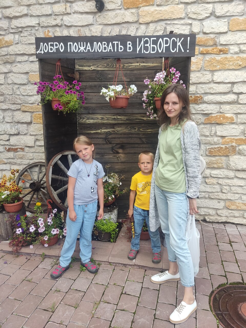 Прекрасный, уютный, атмосферный уголок в Изборске! В маленьком городке, скорее даже деревне, замечательная Управляющая Елена чтит традиции гостеприимства! Жили в трехместном номере (двуспальная кровать и диван). Интерьер ненавязчивый и в то же время цепляющий) цвет стен, мебели, покрывал на кровати — все создает уют! А маленькие комплименты — леденцы в форме петушка дарят массу положительных эмоций и взрослым, и детям! В комплексе замечательная баня! И на ресепшн можно купить фото чай местного сбора! Веники были летнего сбора, ароматный липовый и березовый. И еще рекомендую массаж! Такого уровня мастера редко где встретишь! Завтрак континентальный. Ооочень плотный) безумно вкусные блинчики с мясом — очень рекомендую! Это в дополнении к омлету и сосискам, и сендвичу! Сендвичи нас очень выручили, взяли их с собой в автопутешествие по Псковскому району!